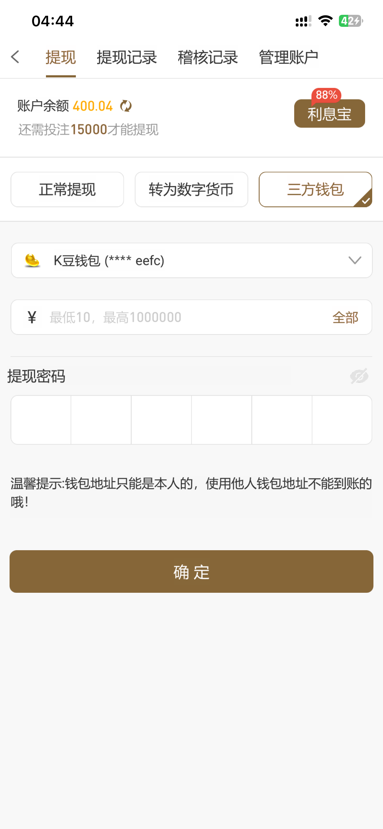 我的提款直接秒的,刚开始我以为黑了结果我网页卡了一刷新就提现成功了