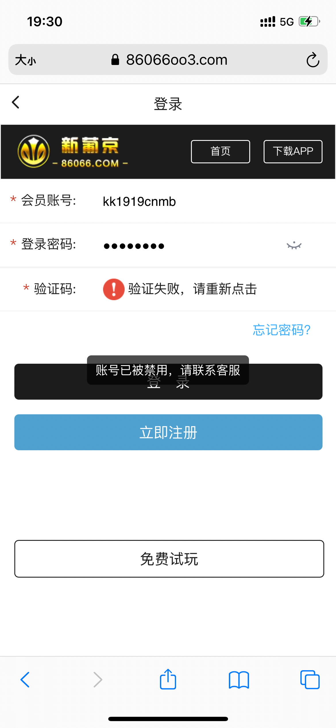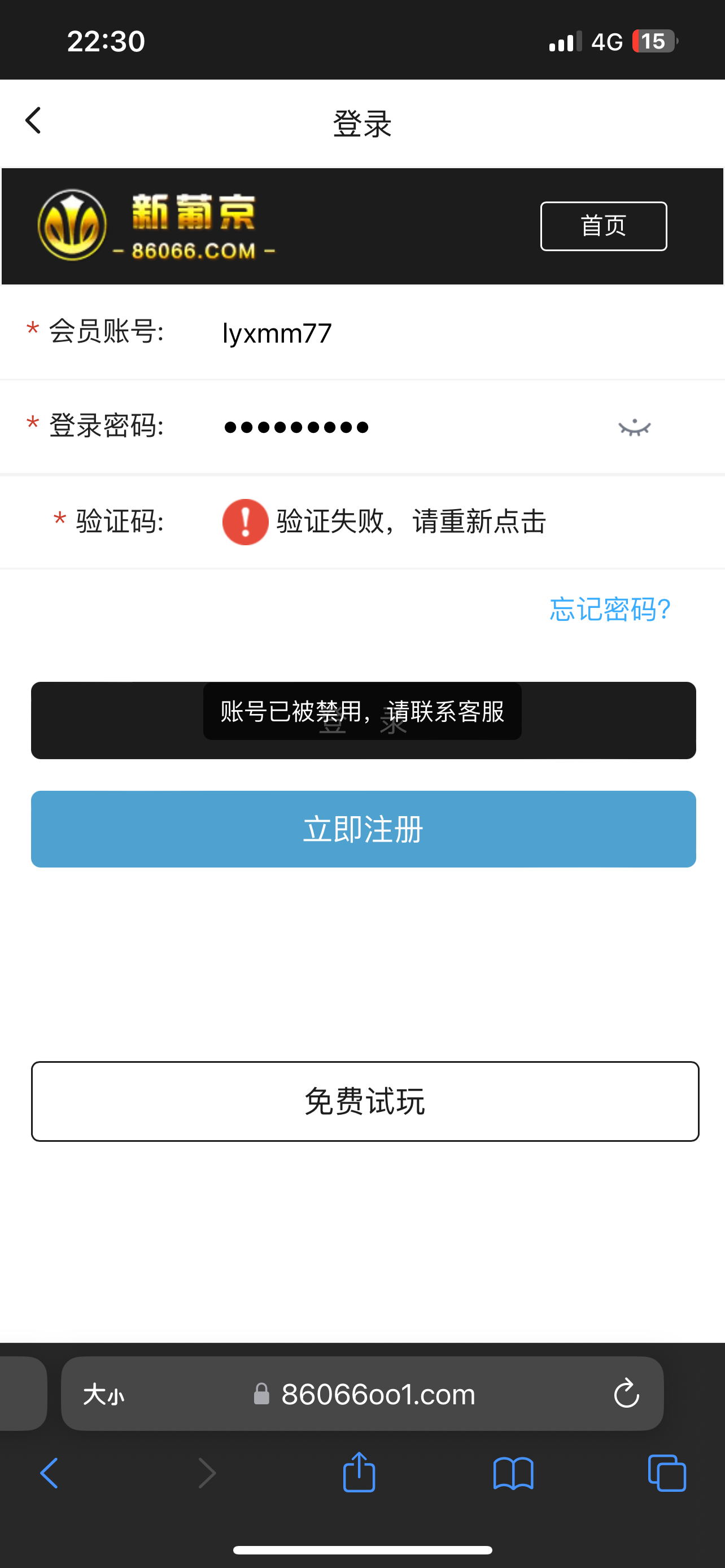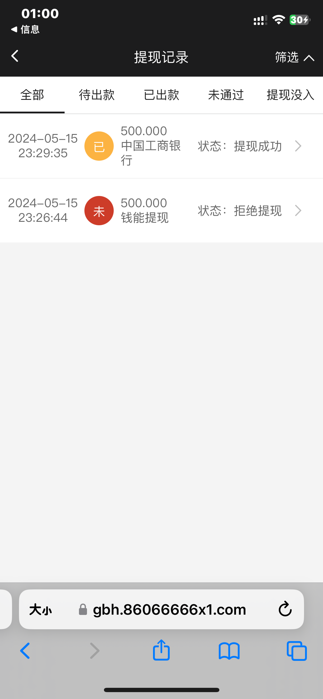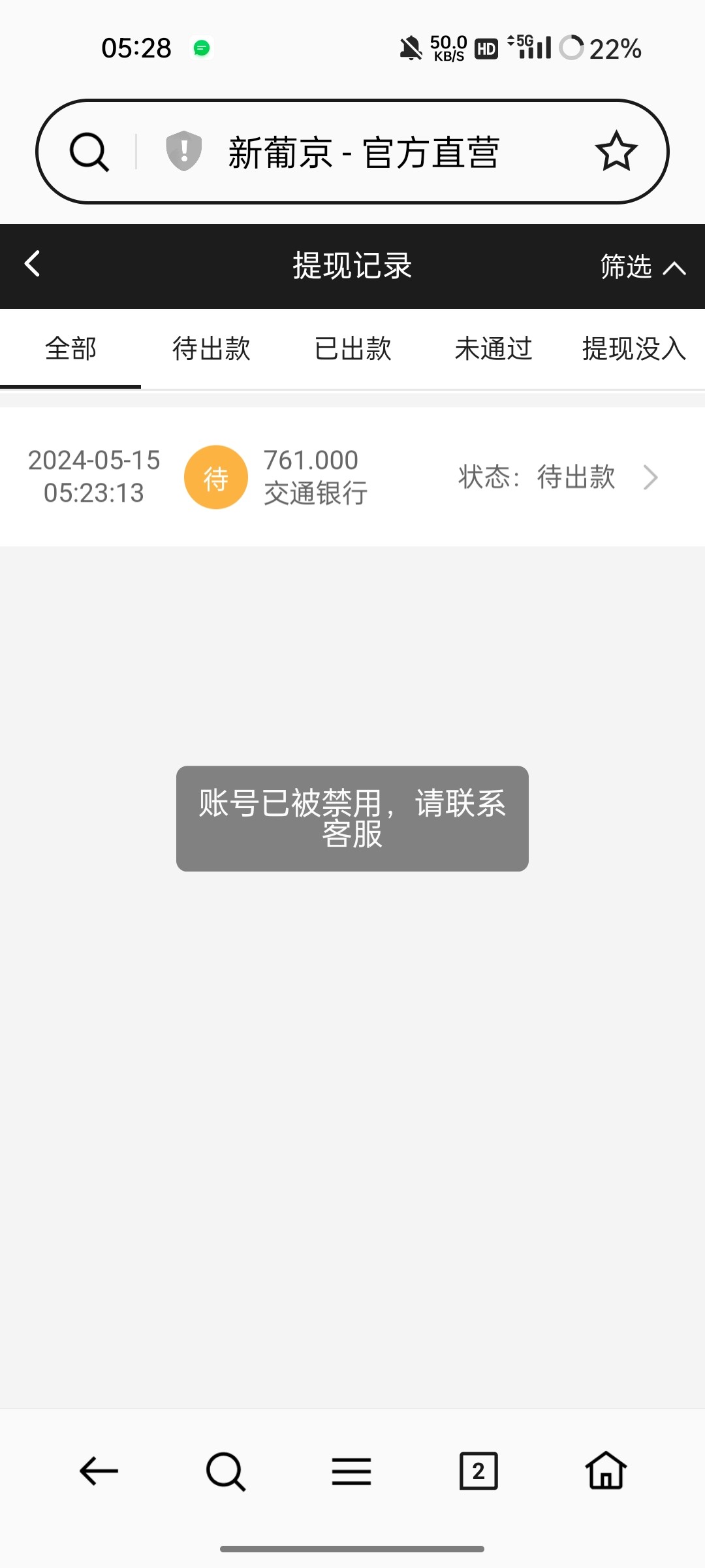 打到500,提现账号被禁用