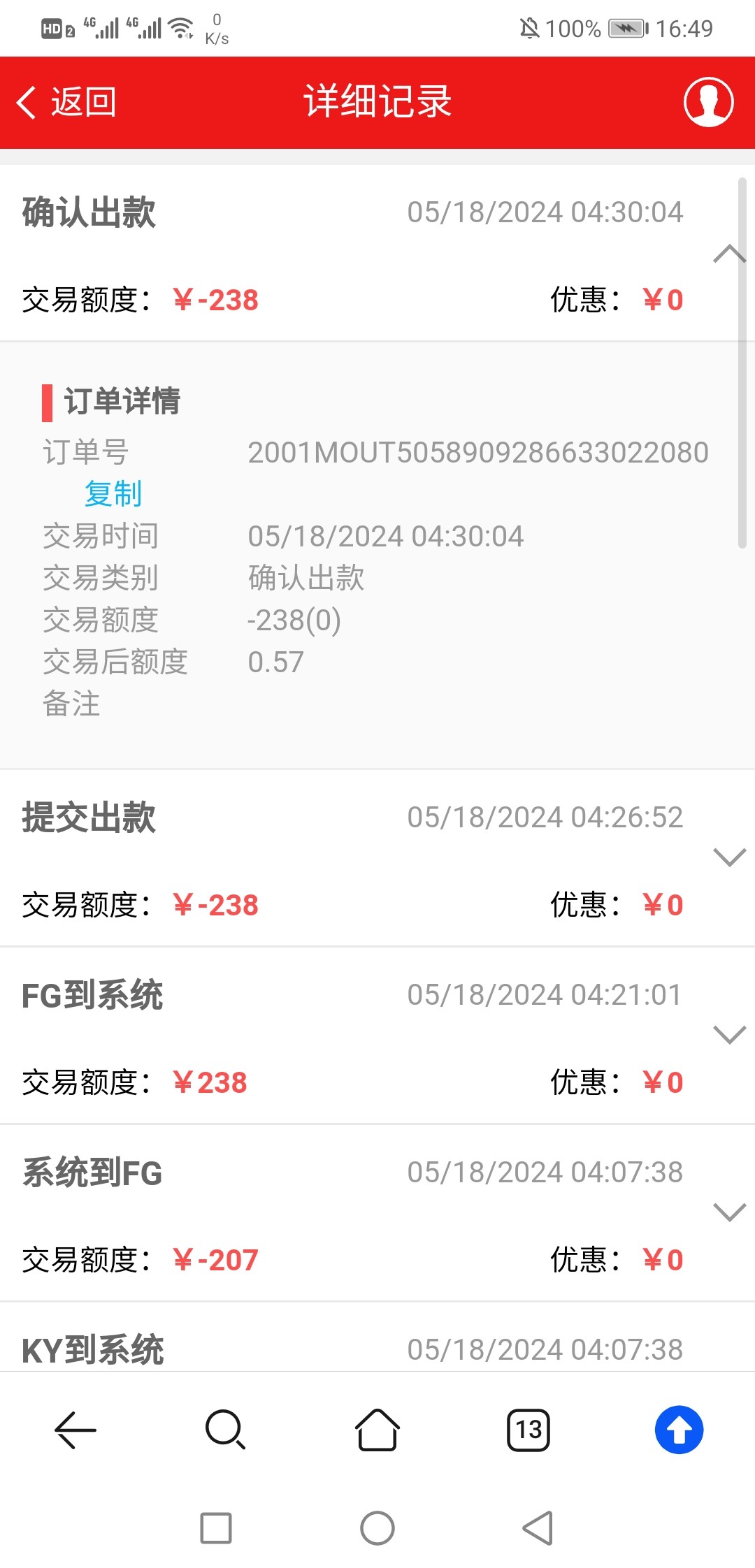 不黑啊我充值100提238到账了