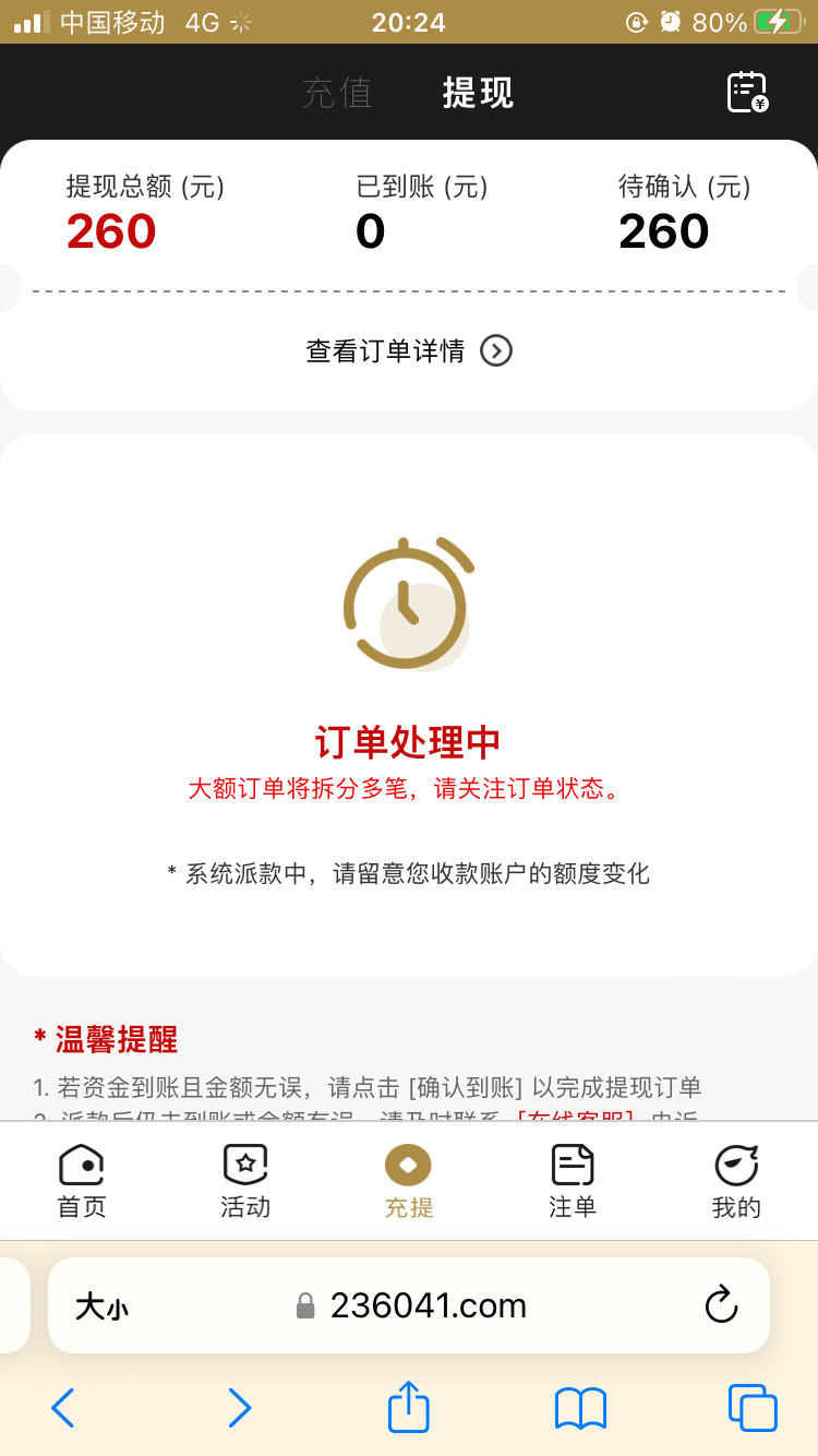 新注册的号也碰到了提了一百不知道到不到
