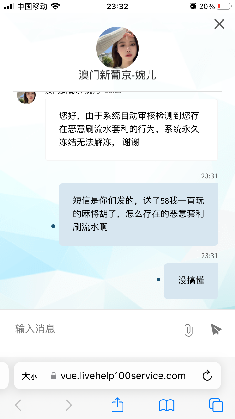 两个客服,两种回复。他大爷的婉儿这个畜生又给老子把号冻结了