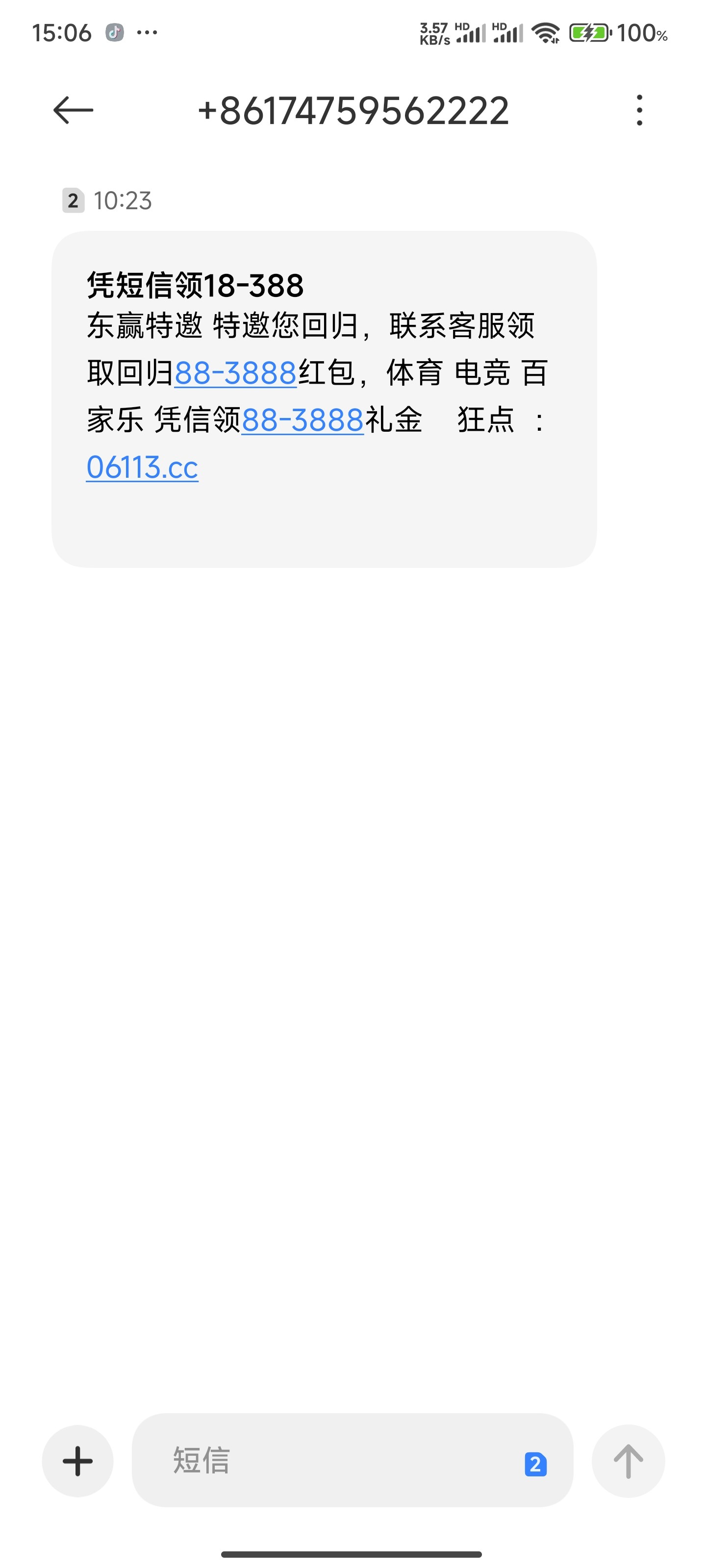 东赢碰瓷短信回馈彩