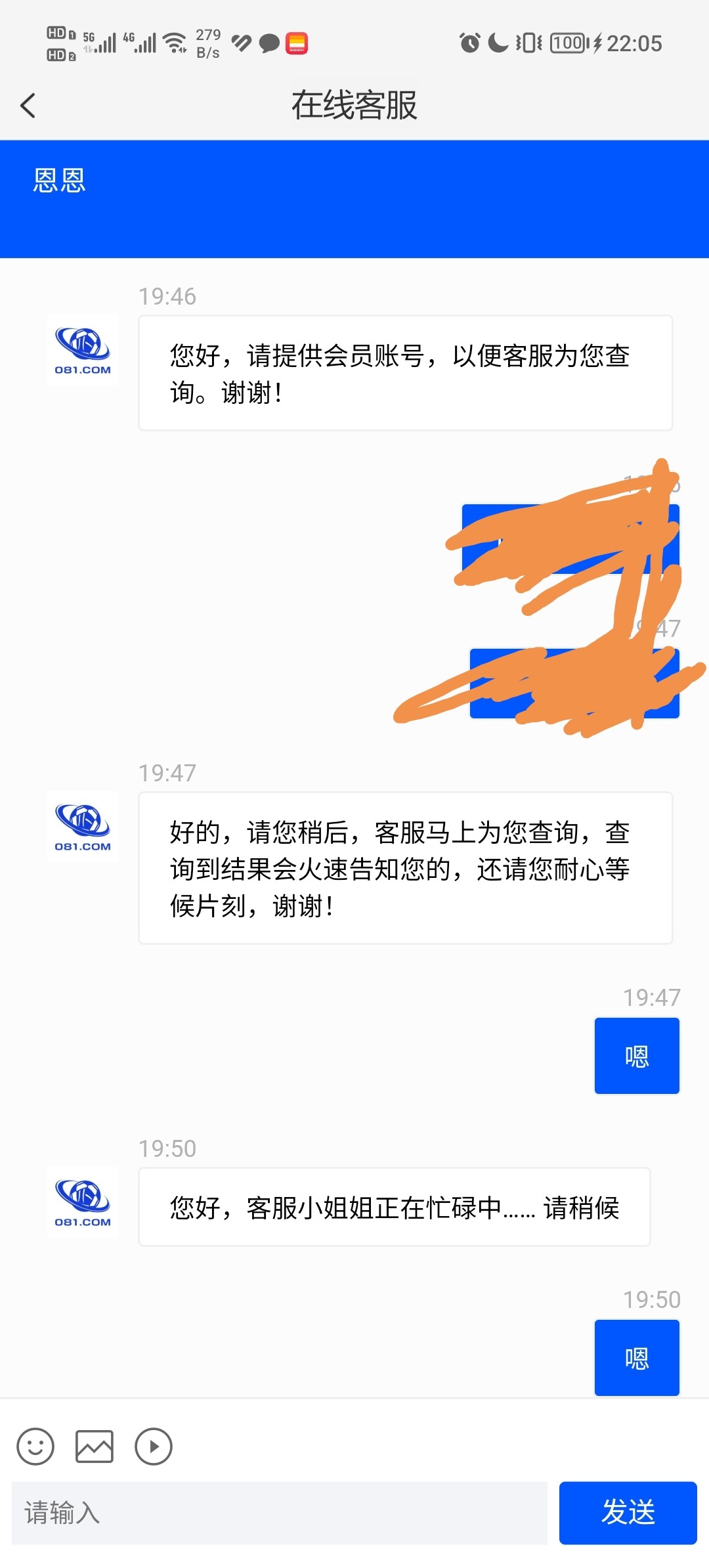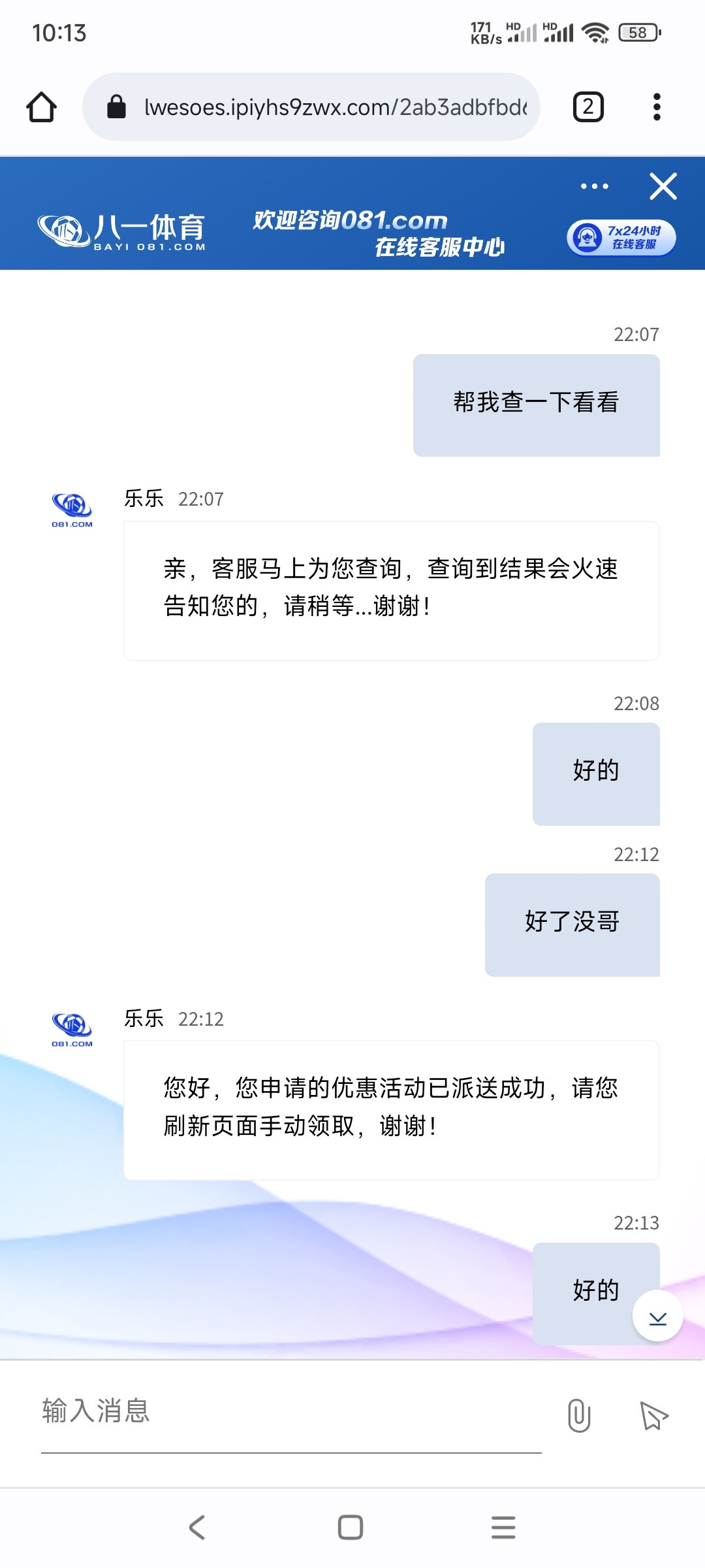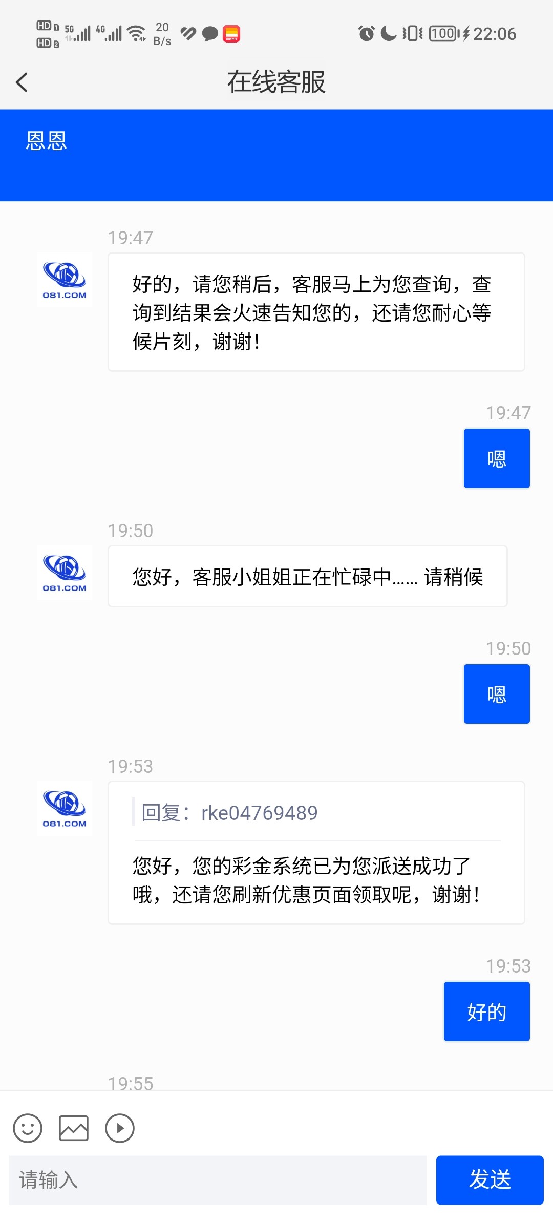 机器人打电话 081.com 上面写自动送 但我是找了客服 他查询后就给了