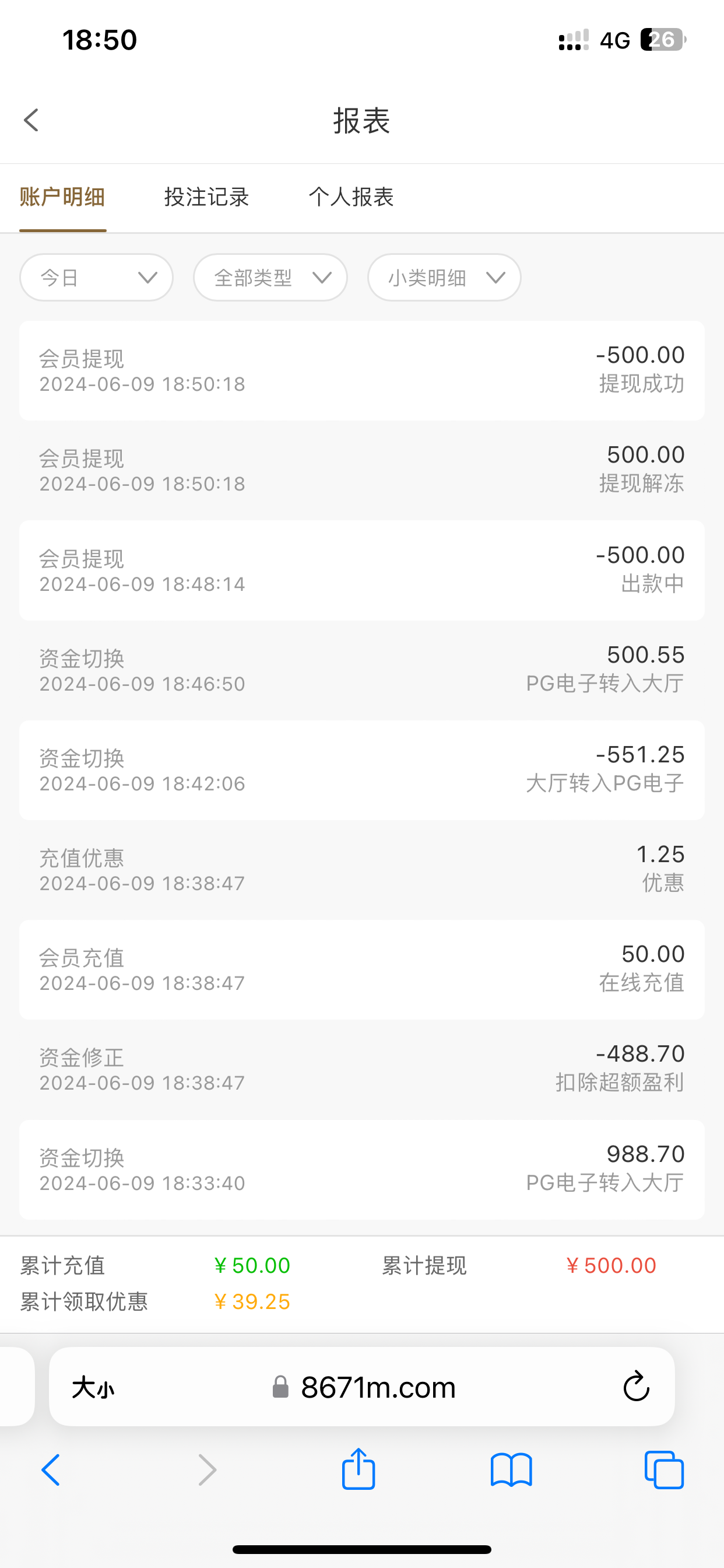 出款到没到 不是最多只能五百吗 我打到一千给我扣除五百然后只能提现五百