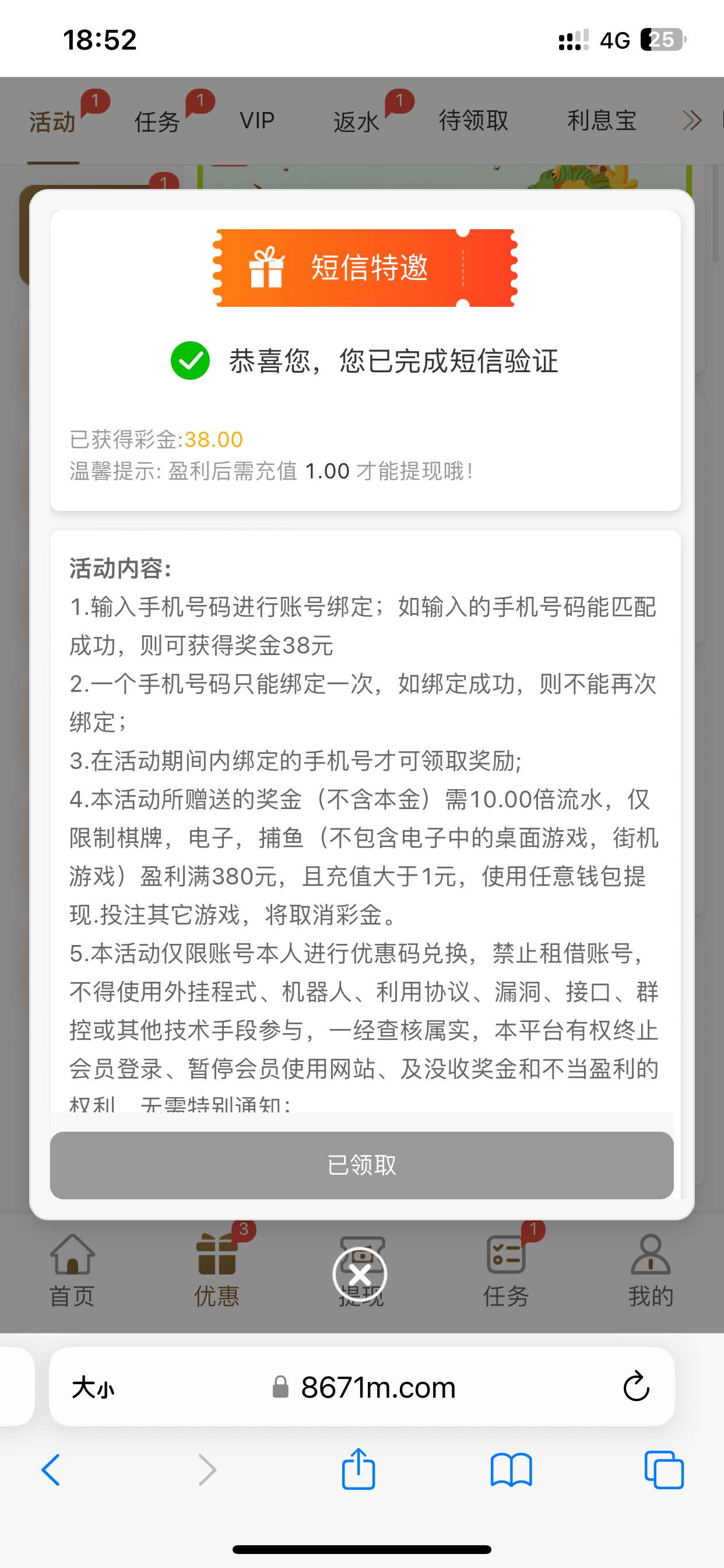 8671特邀秒38元彩金