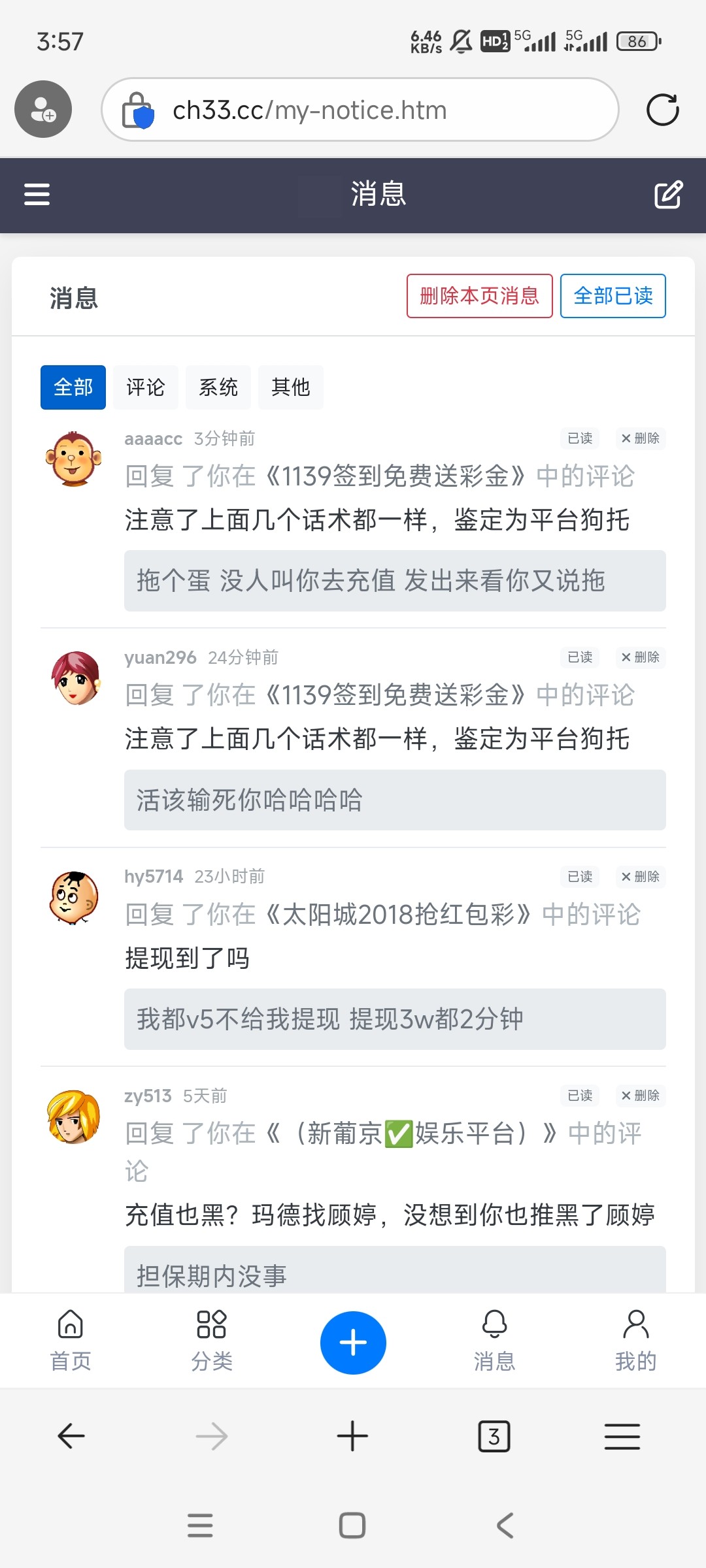 本来我只是怀疑现在我确信上面截图那几个必是狗托, 看清楚我并没有回复他们两个,在没有消息提示的情况下谁会一直看这个帖子?还两个人都是还都特意回复我了,你们这个演技今晚要吃电棍