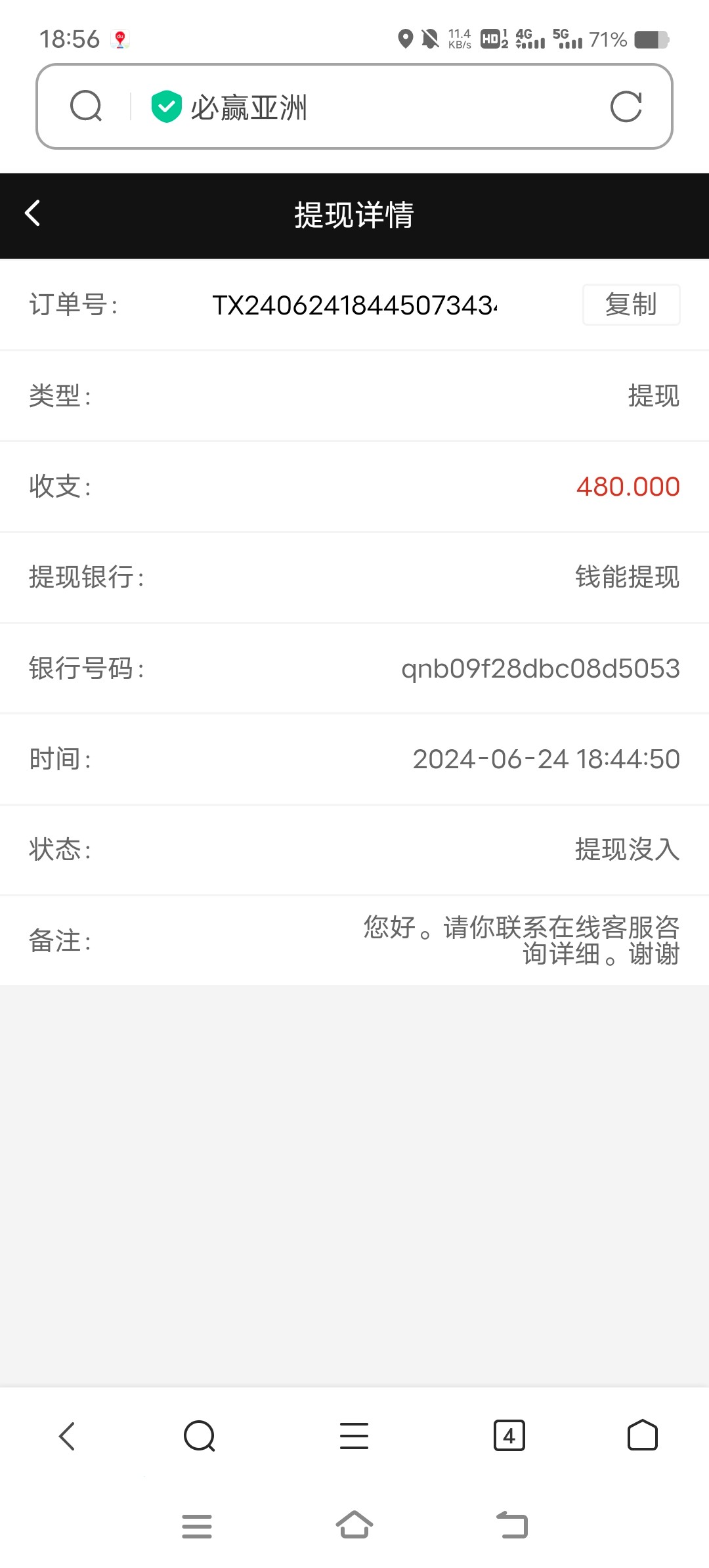 big108 提现400多,3点多提现到现在,只要不封号就有希望,要提交资料给客服核实很麻烦,反正我忙活了2个多小时才搞定,刚钱能到账了