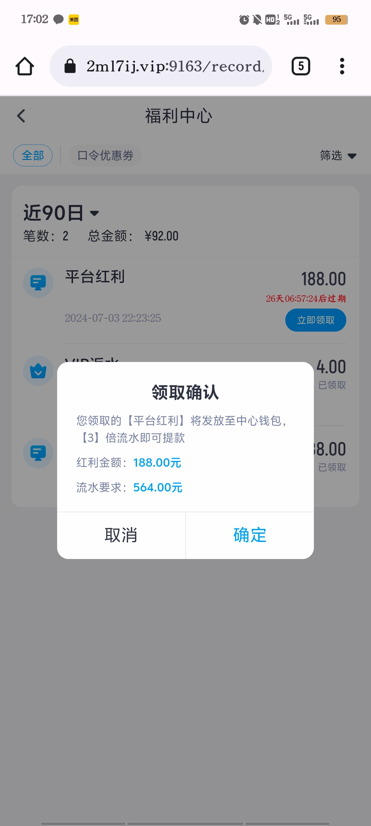 188是足球8强送的,登录一会还有一个免费转盘,等一会就有电话打来送58!