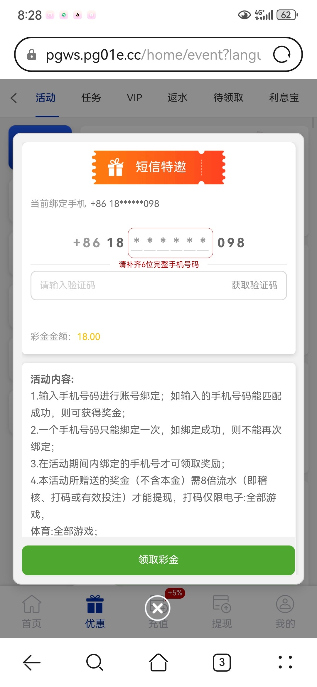 这种模板,没收到短信去注册,以后有短信了也领不了