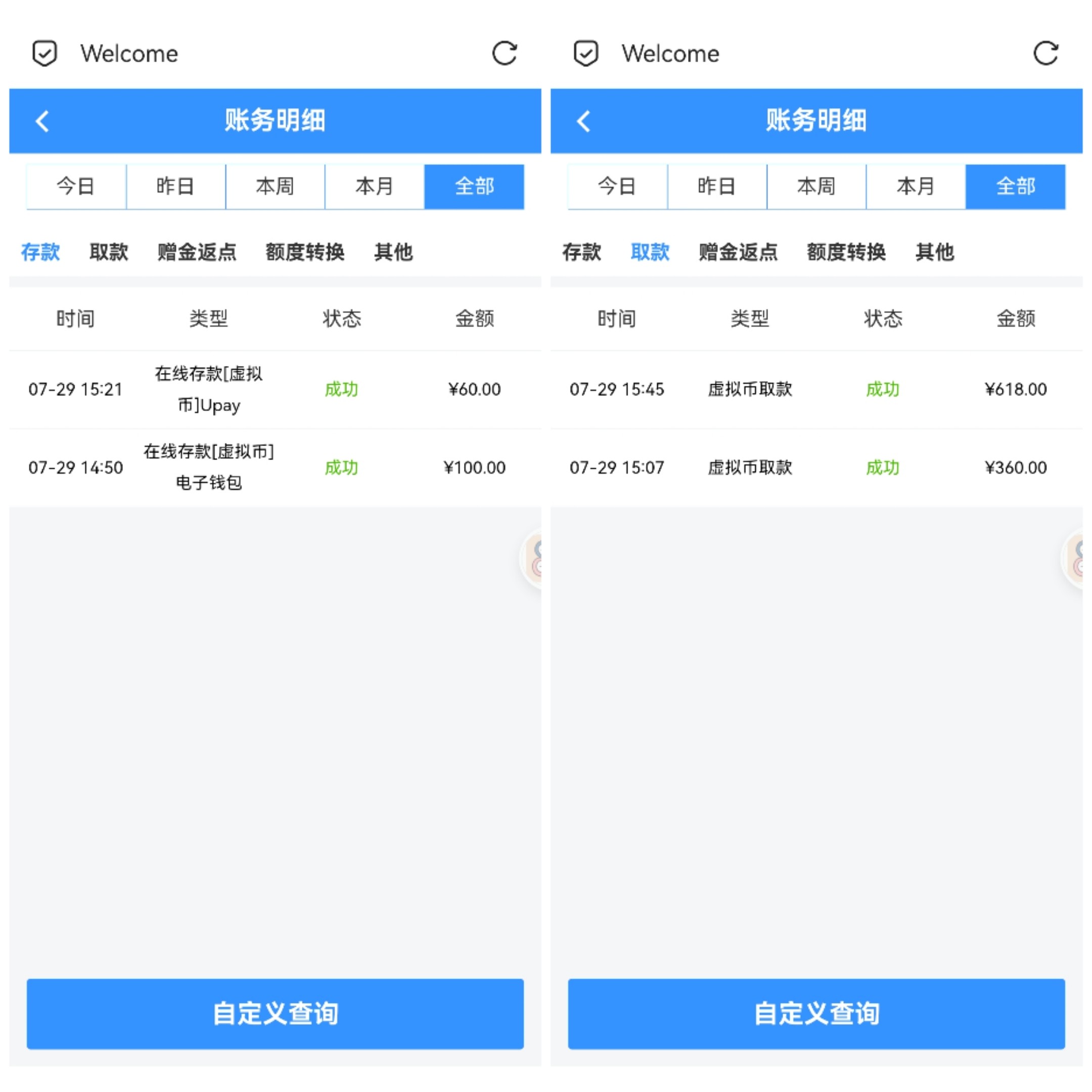 xq2015 哥,看我上一条贴子100下918,注册半个月天天签到2块彩金,今天给我号放水还给秒取款了,这一点秒杀其他小蓝台,放其他台估计判刷子套利了,不是狗托放心