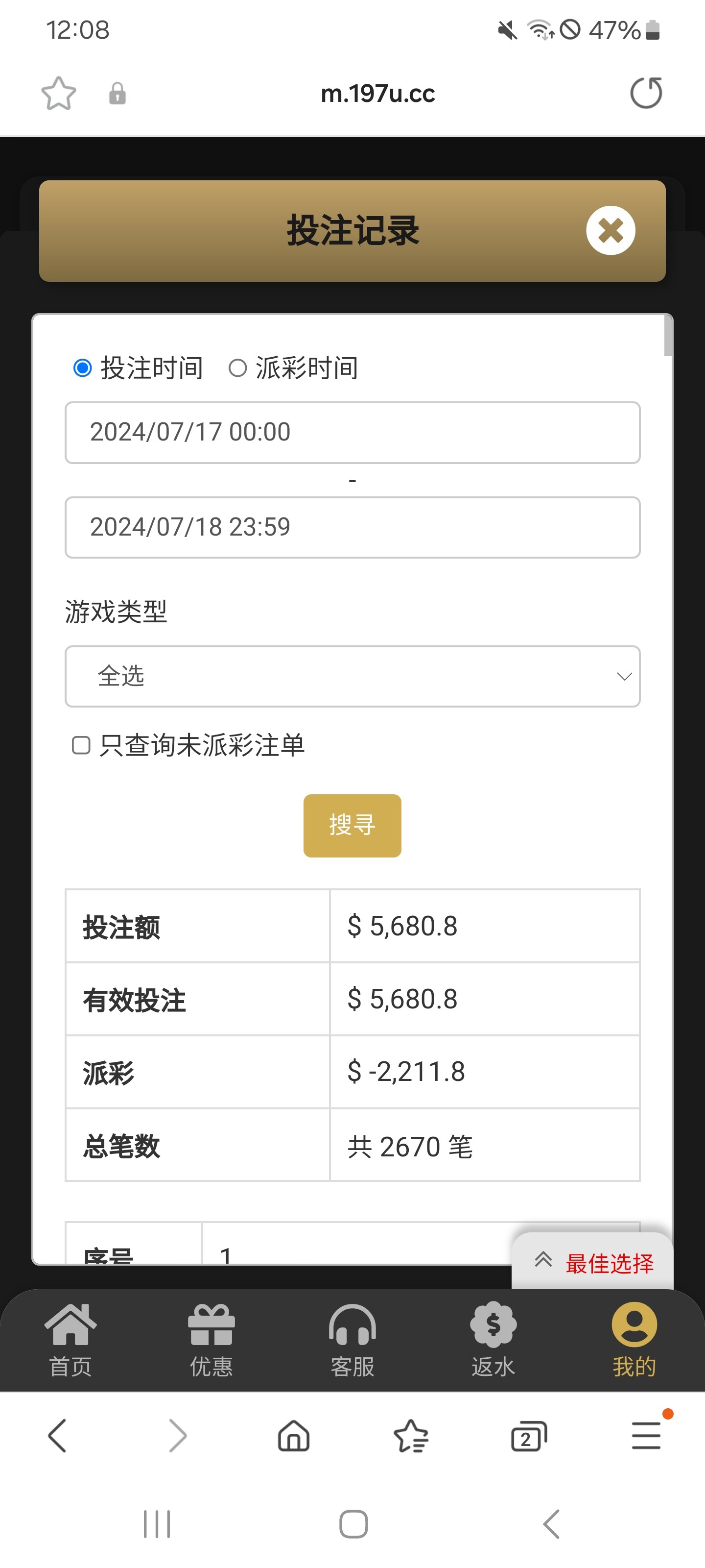 对 197刚注册那会几块钱都给爆几百 现在每次充值都基本打一倍流水出来  真恶心