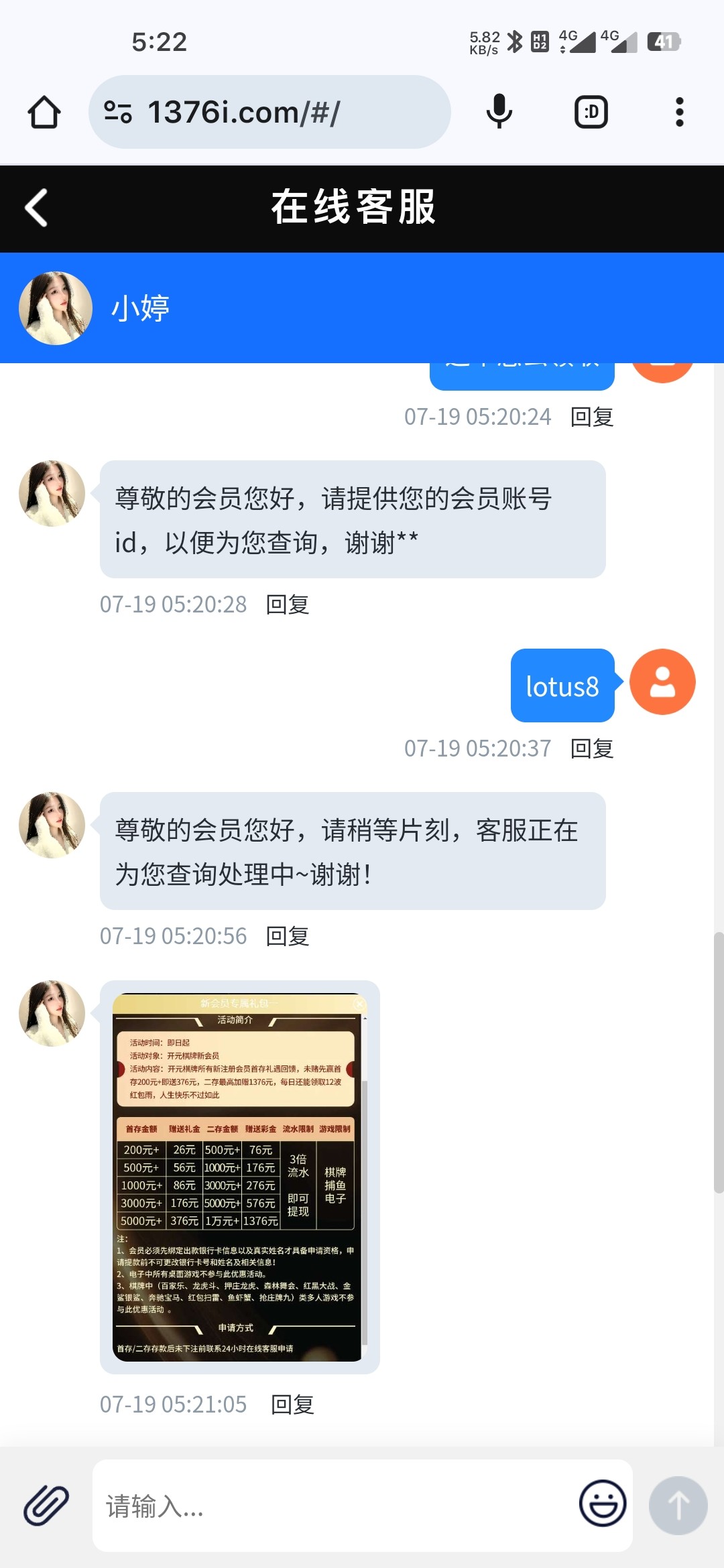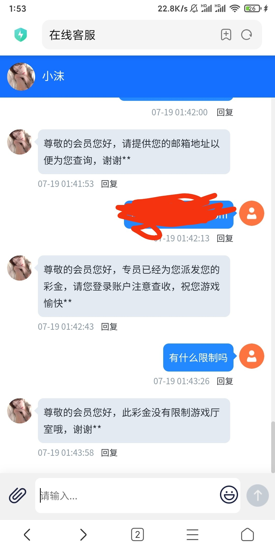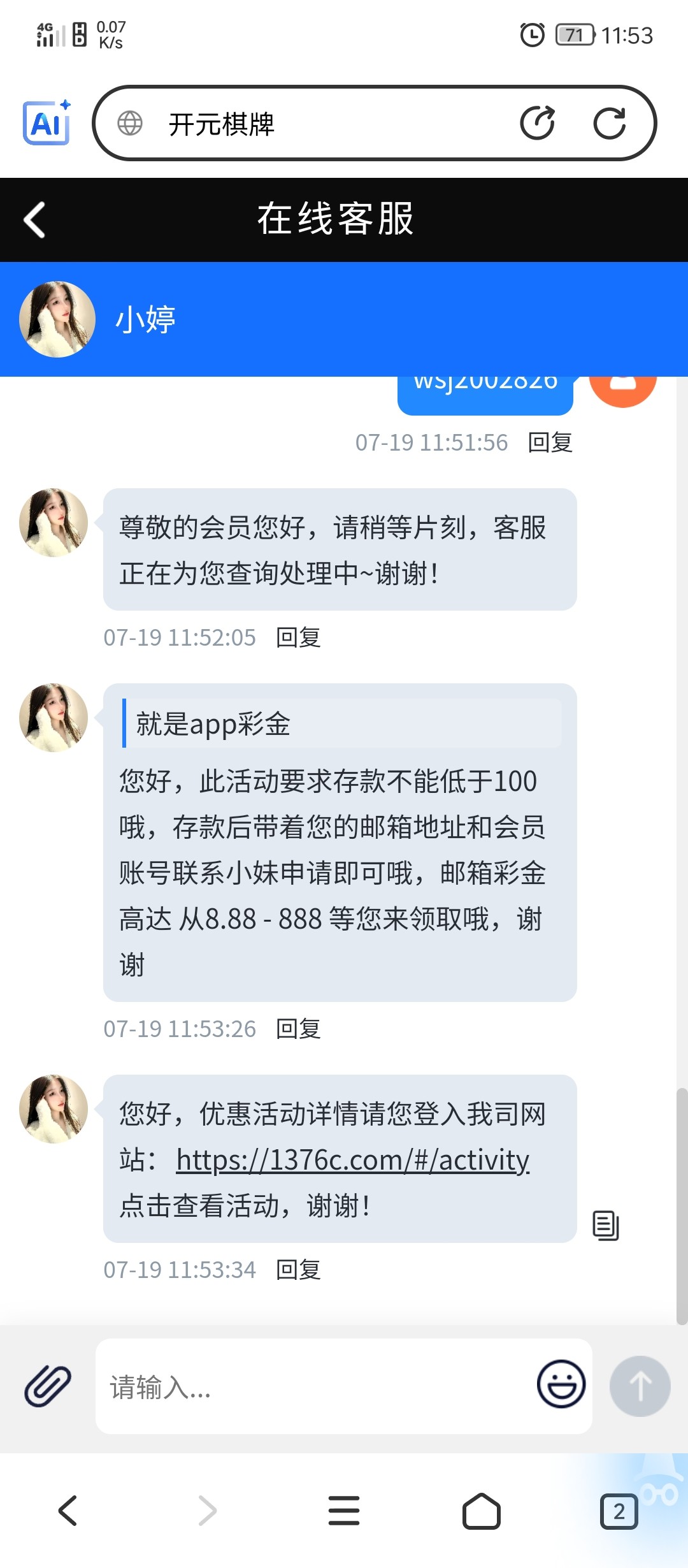 又领了一个号目前好想无限撸就是客服回复慢
