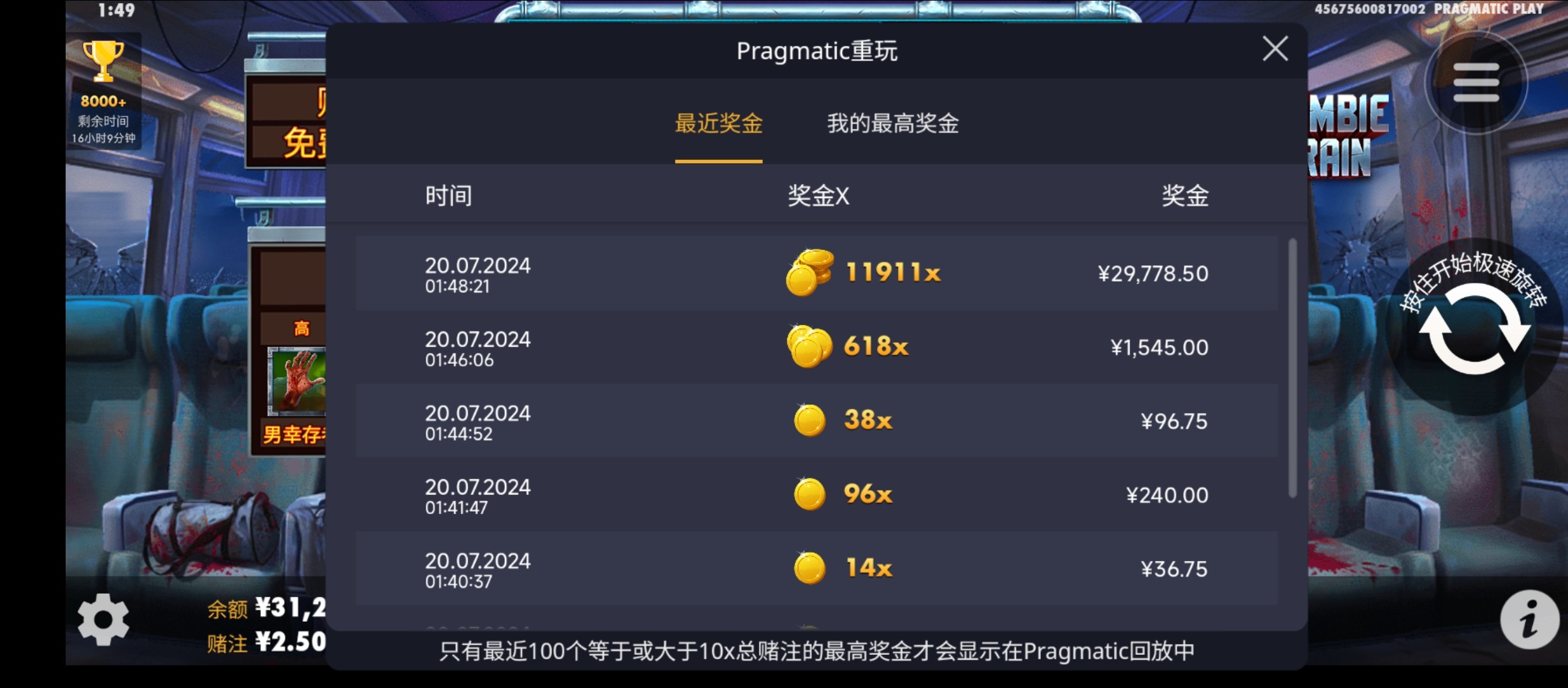 老哥牛批。我Pp最高也就1000倍。从来没爆过大的。