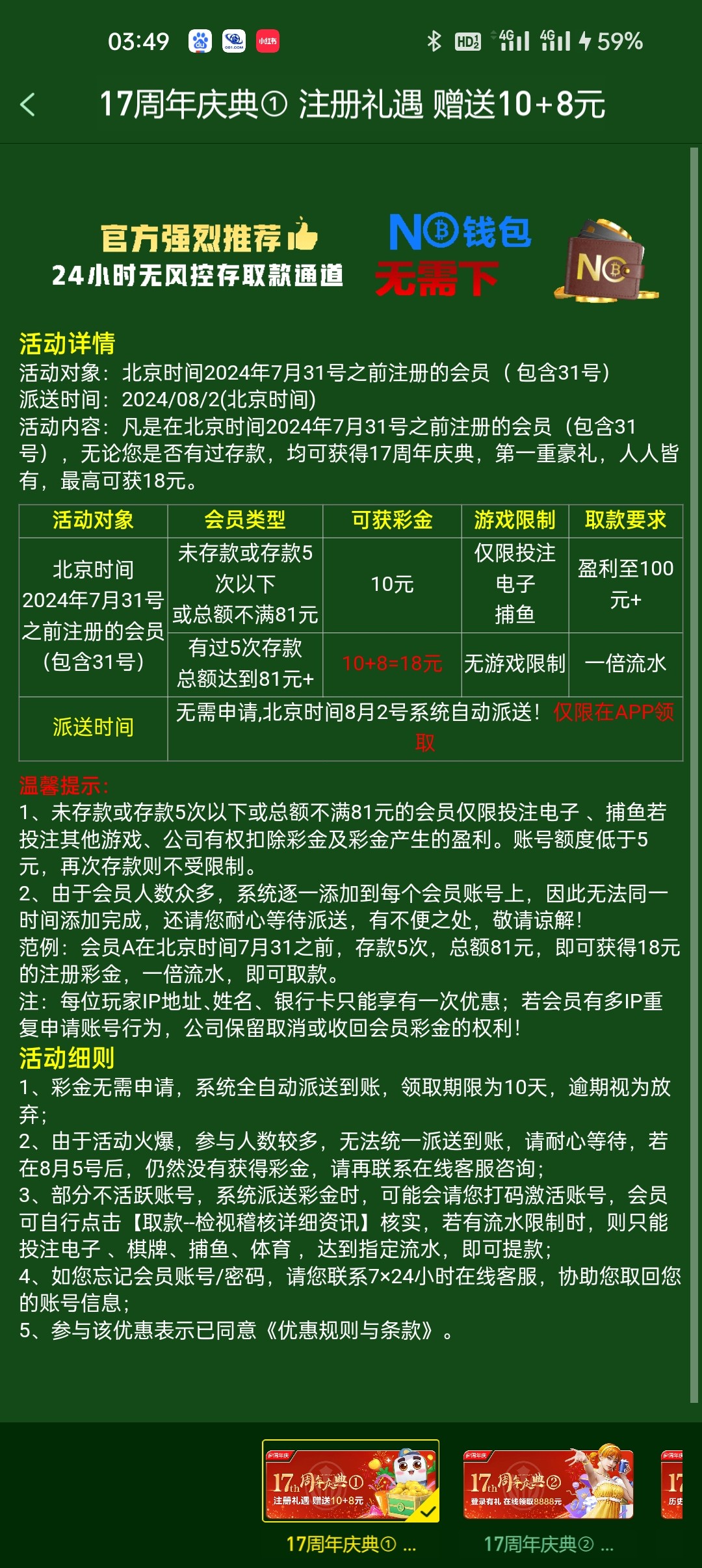 31回馈彩可以囤号了