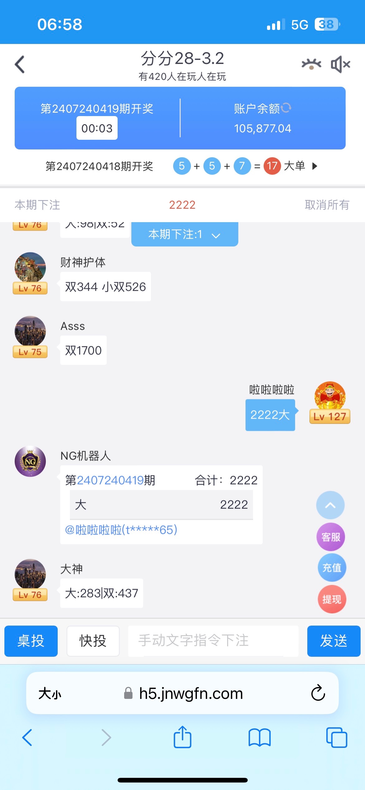 本来3w输干了第二天反水干到10w 团一个888红包吧