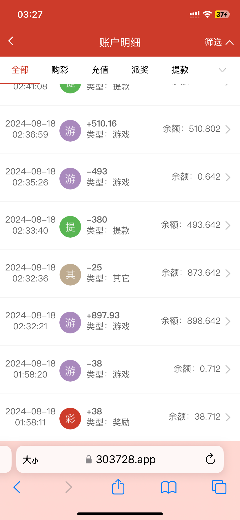 zsl1991128 打出来了,麻将二8毛炸了220,然后打的棋牌百家乐,然后出款前充了7块!竟然给出款了!381