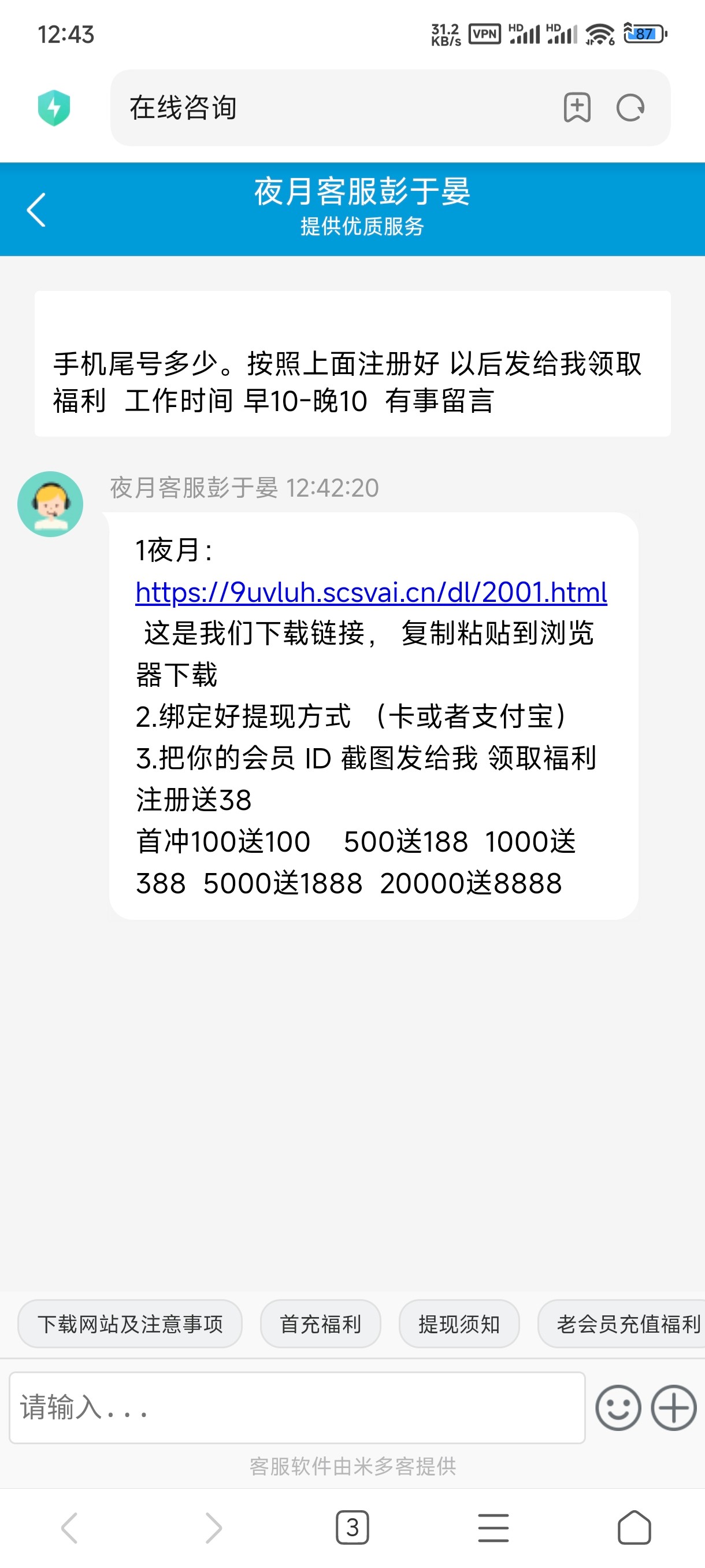 sxw123 本平台 三倍流水 意思是 提现100 需要300流水 1000需要3000流水依此类推!! 注册金只是体验,为防止薅羊毛,需要首充激活账户提现功能!!! 提现时如果充值和提现的渠道不一样需要找在线 ...