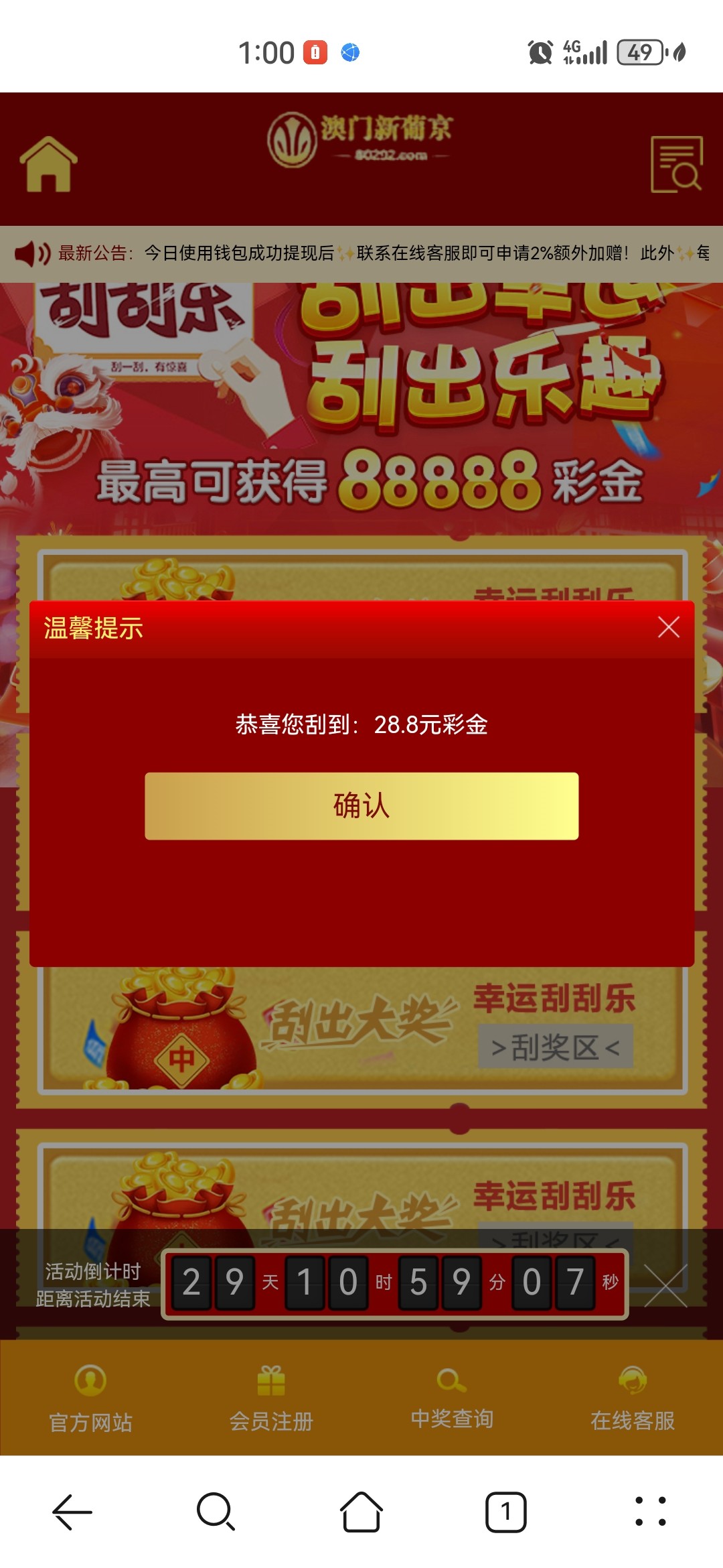 老用户回归刮刮彩金