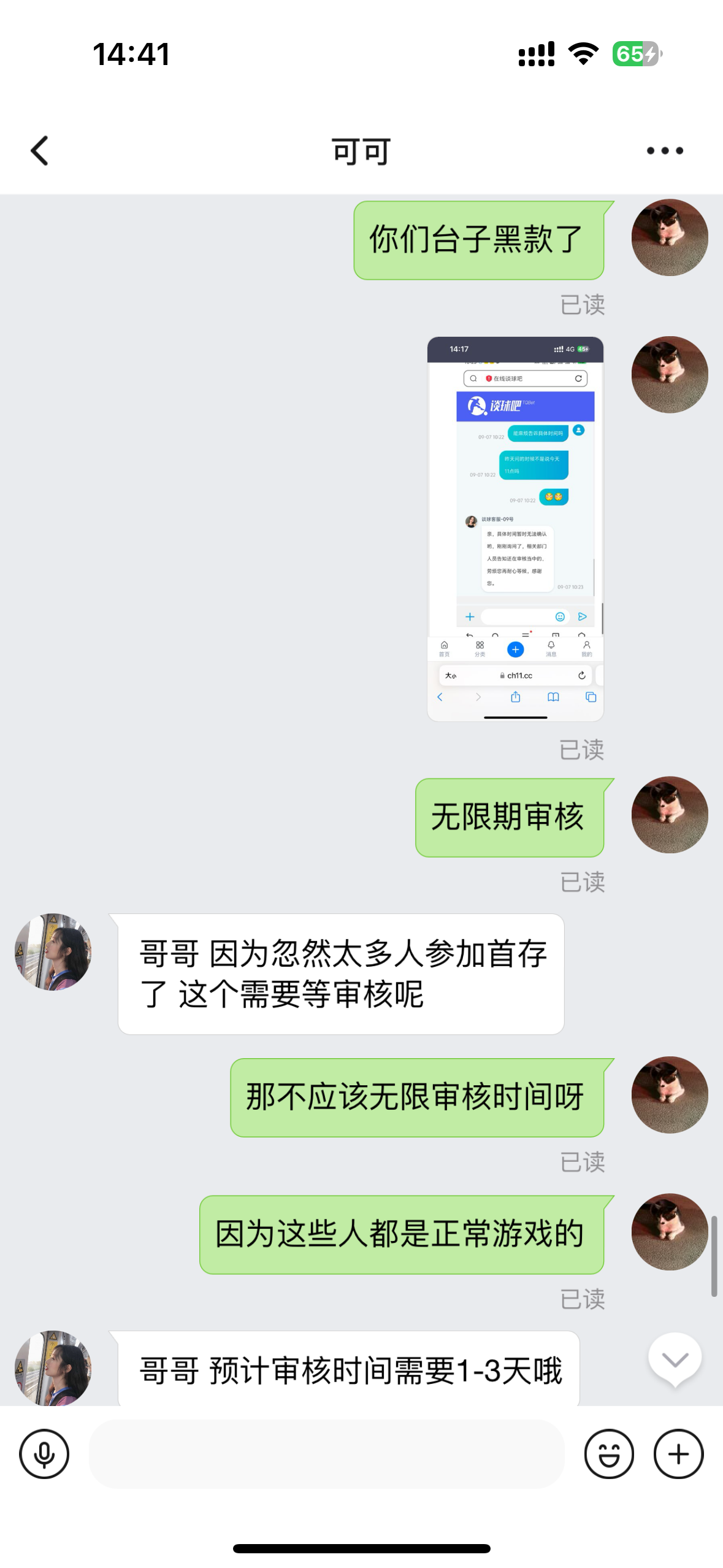 我不是在审核有必要在你这里一直问?看老我问几次了?谁家提款审核要十几个小时的,又不是威廉系列。真够蠢的