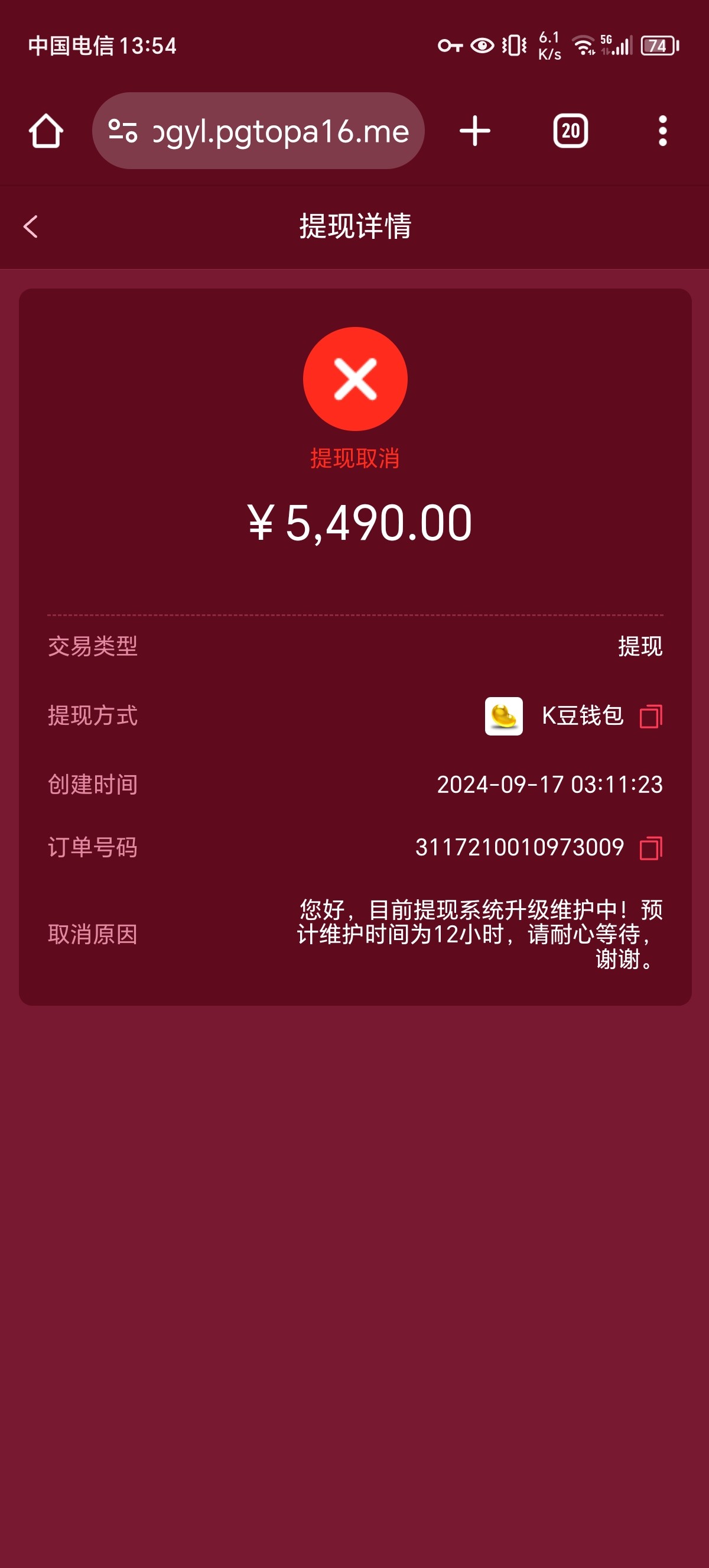 充了 800 打奔驰宝马 中了一把 3600 后面我提现 就被拒绝退回了 提示系统升级维护 还被罚了 10 万流水 客服页面也进不去 进去就是显示留言 台子是不是要跑路了 老哥们有没有什么好的建议没?
