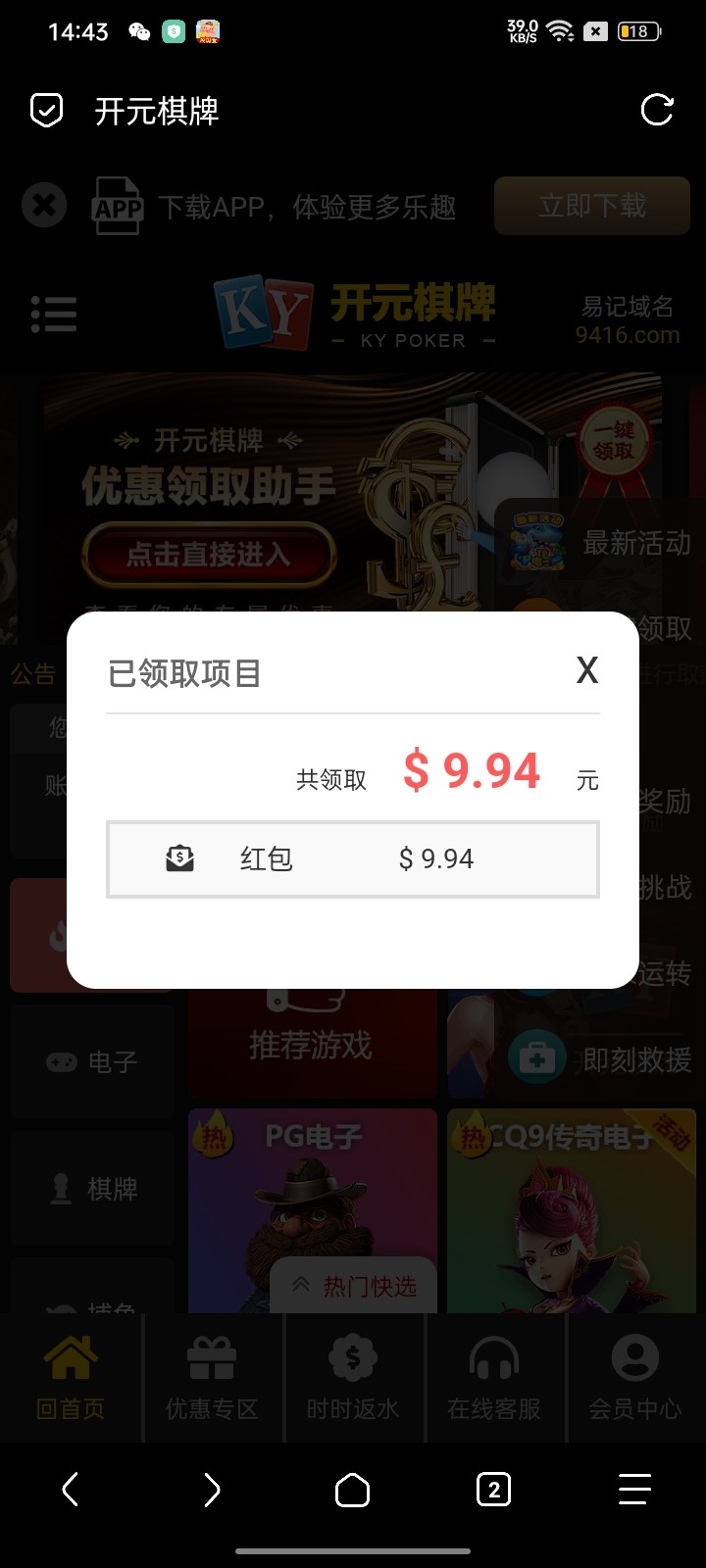 9416老用户回馈彩金