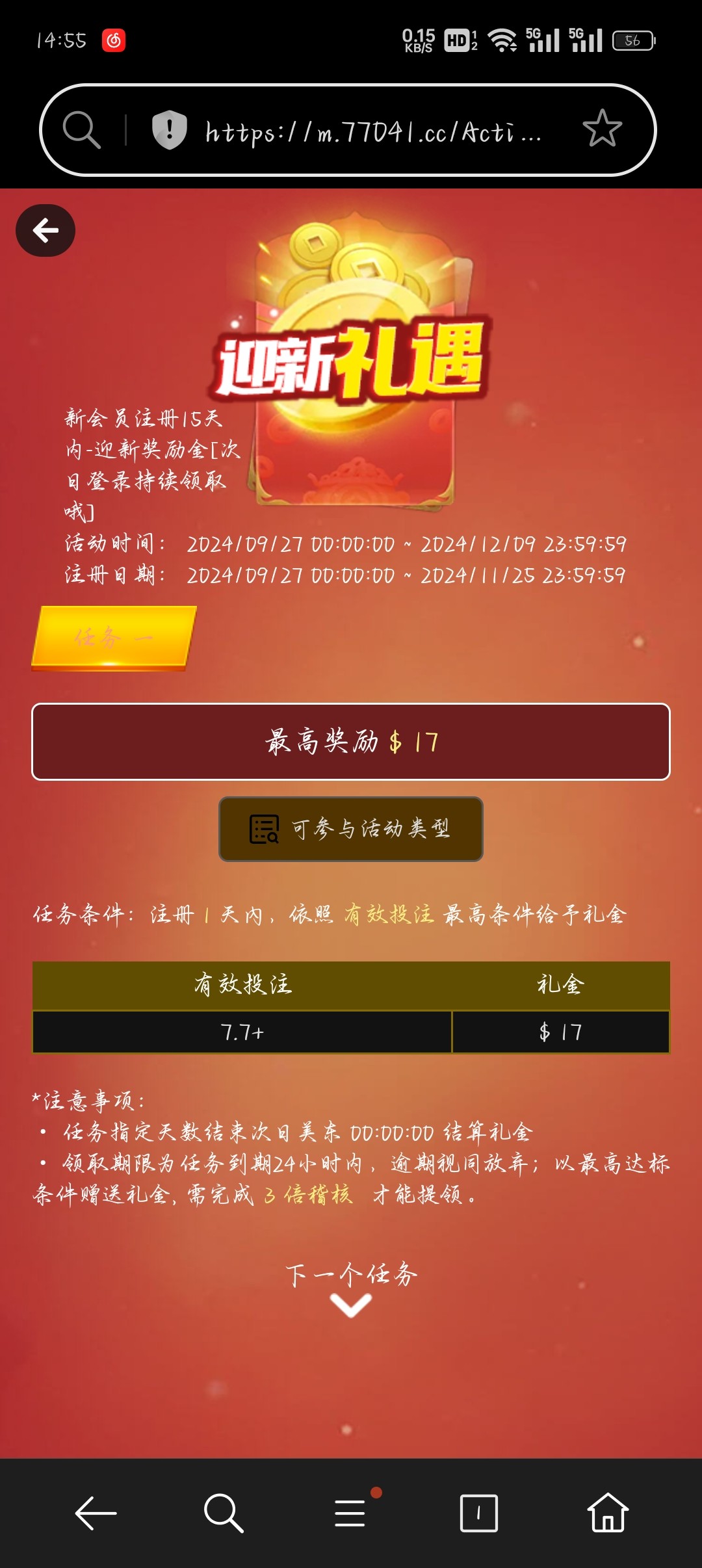 这个我特邀没送 昨天嫌的无聊 打以小博大 我充51 不小心领到了首存奖励 提了251 又冲51玩以小博大提277 今天送了17 爆了440 扣了我一些提了288 这个网站还行 今天以小博大没打出来