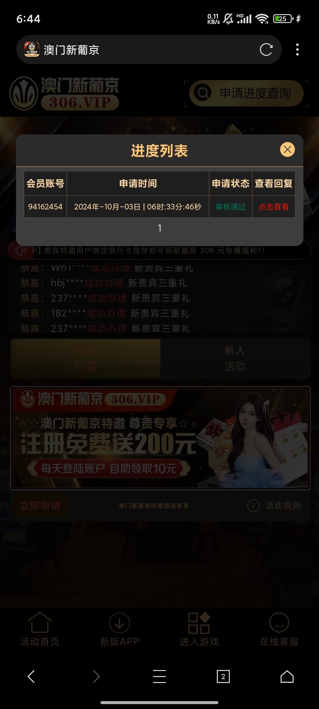 不知道能不能到账,短信刚刚删除了,网址看图!306.vip