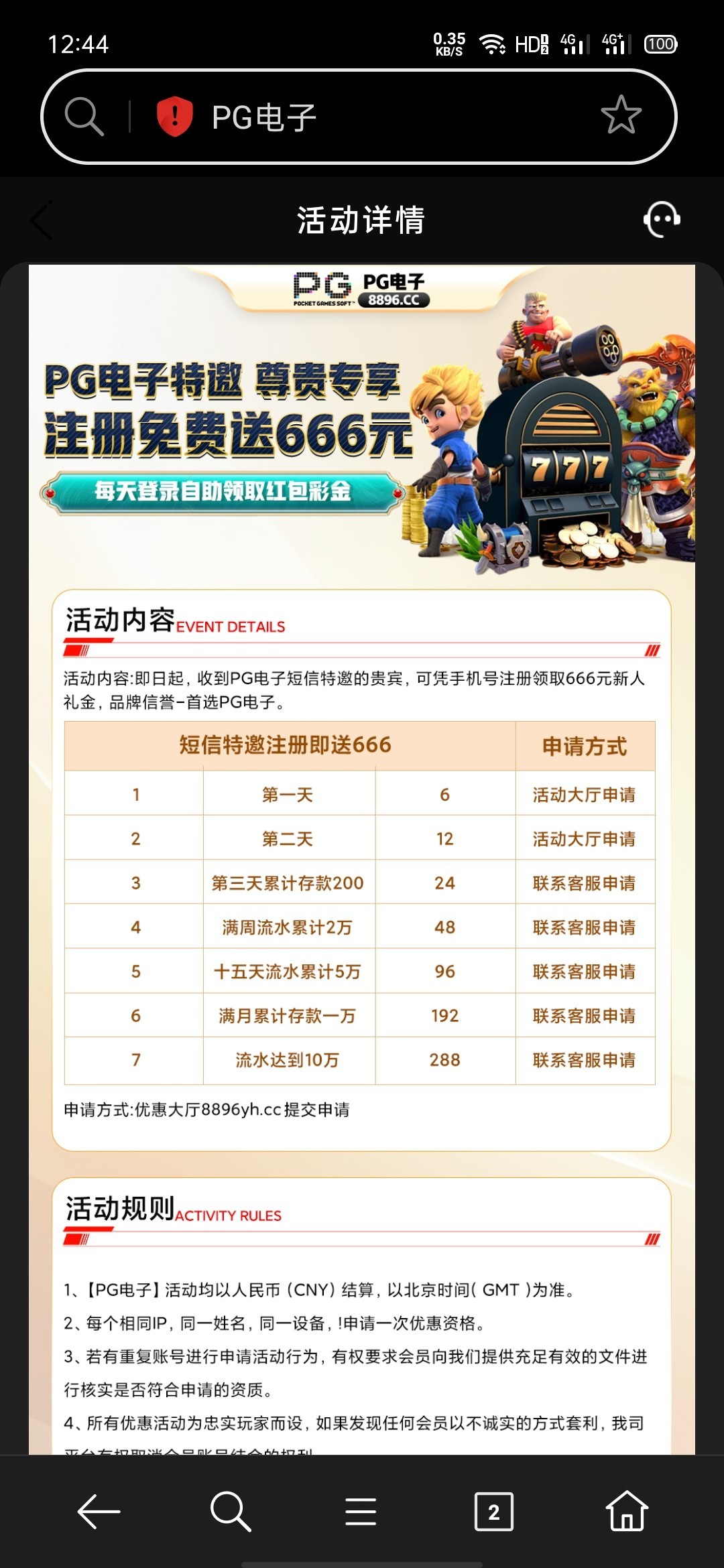 PG8896短信特邀彩金