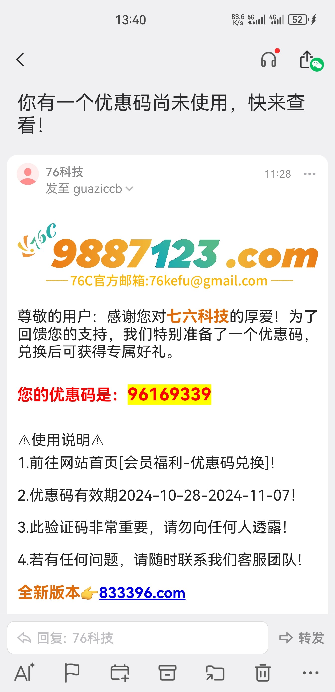 看看邮件自己有没有优惠码