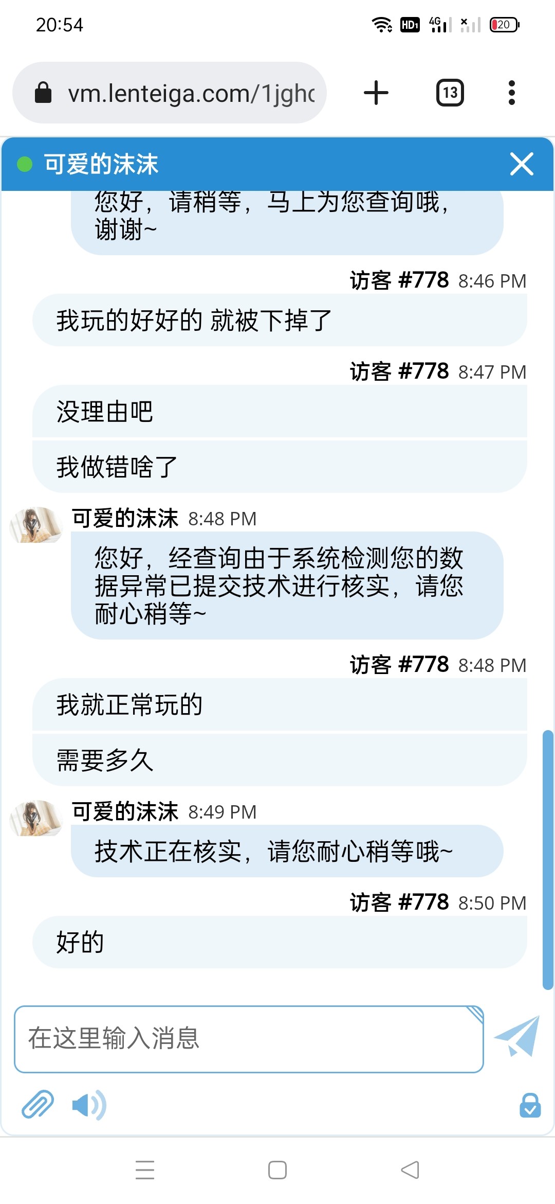 这两天充提比较频繁  昨晚一共充了3000前面500打pg输了 后面去去打败家乐 充1200梭哈一把没了 又充1200打到5400提了5100 留300拉  拉着拉着就被下掉账号了 昨晚问客服一直说在处理  现在问也就回复在处理中  这是要被黑了吧
