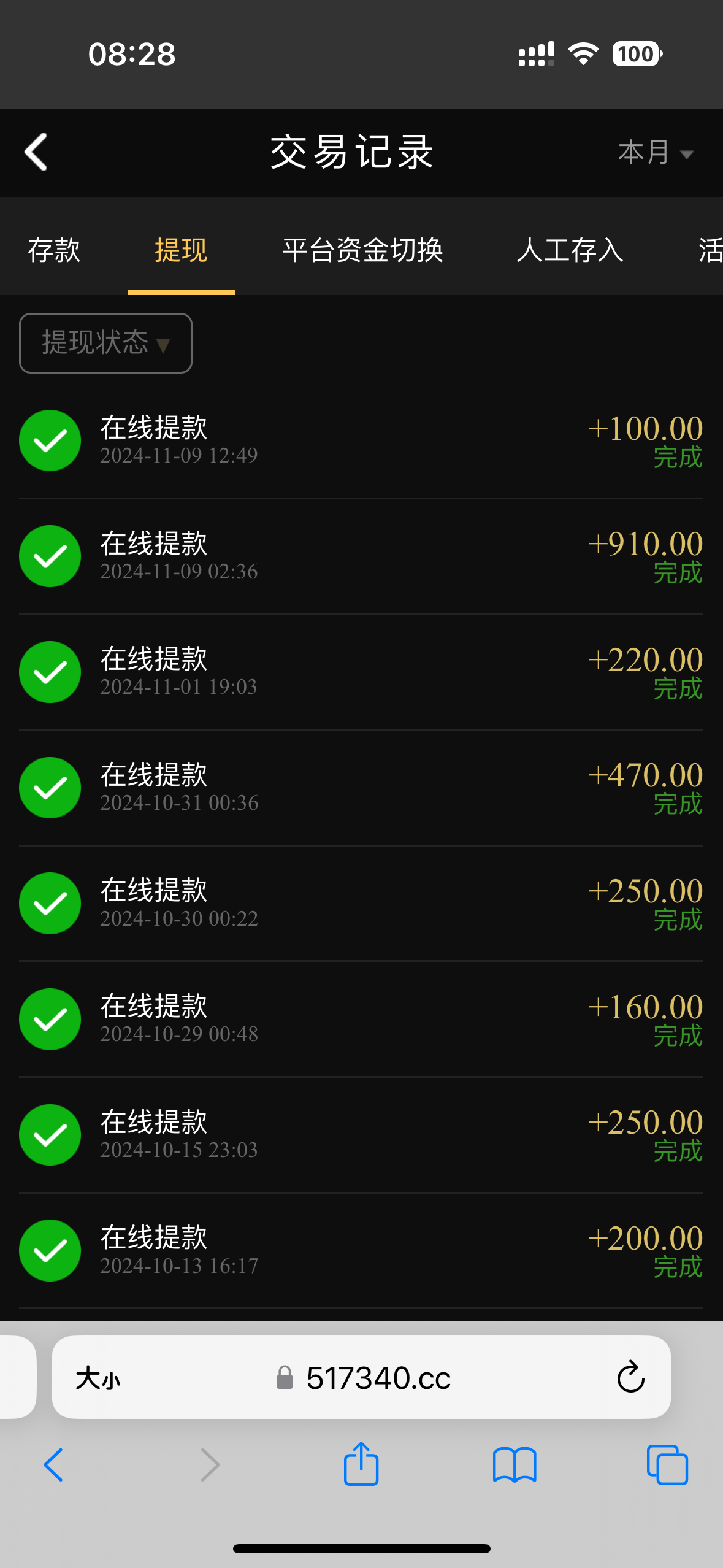 昨天冲200输完了今天回水4块打上125体现封号