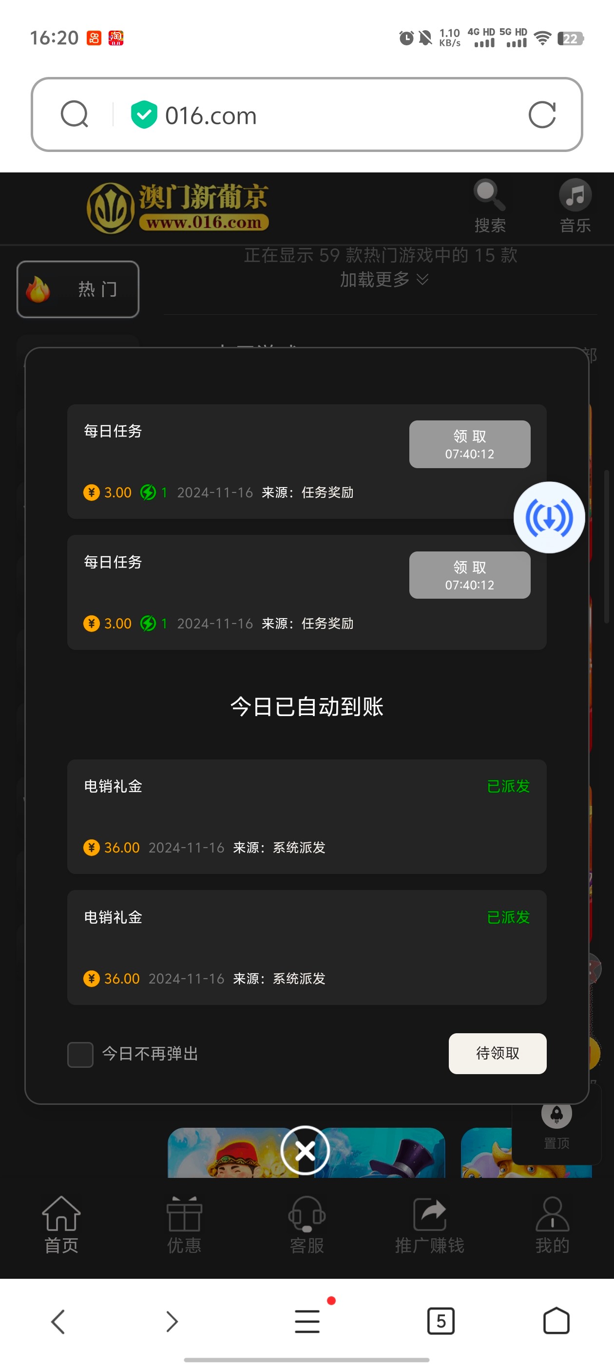 昨天看别人送了然后注册 今天打电话来送了36 打麻2出了200提现到账了 感兴趣可以去注册看看有没有来电话
