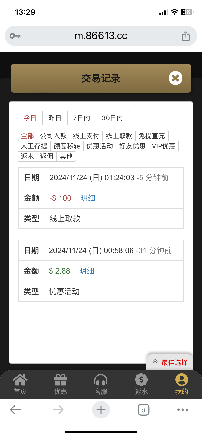 登陆上去就有我的才2.88但出了100