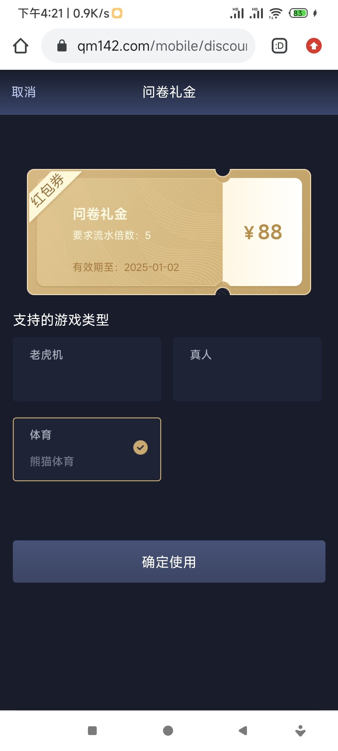 88到账了  在优惠卷里面用 qm6.vip