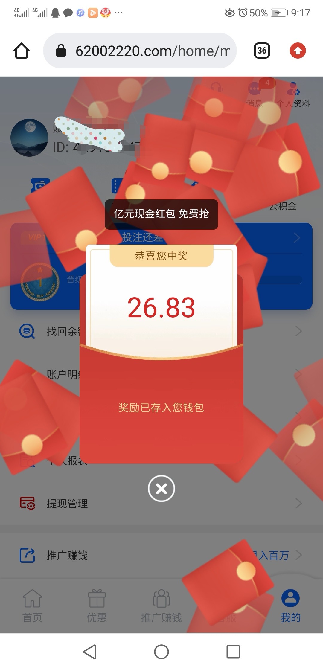 兄弟你推的黑台吧,充值50没有领取优惠都不让提款