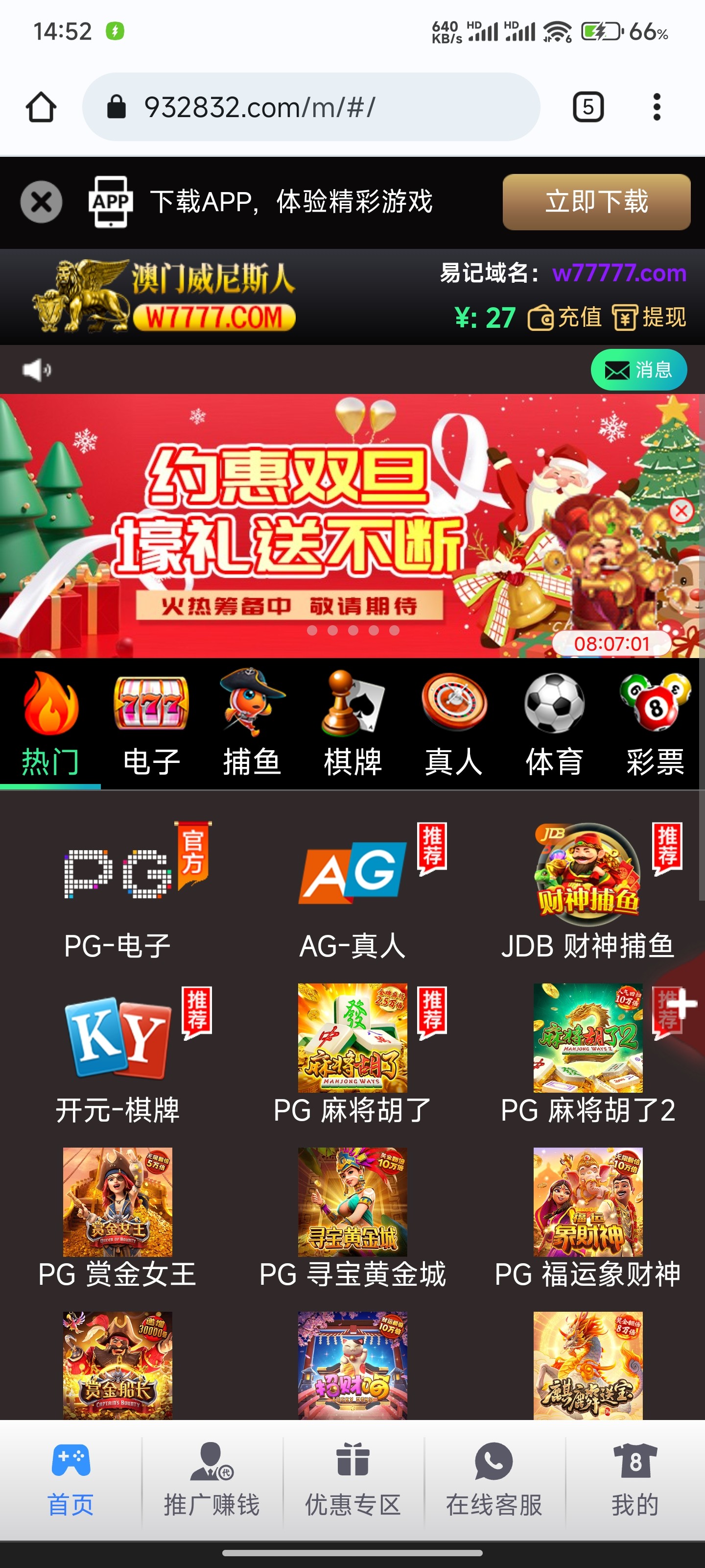 我14号注册绑卡没充值,今天16号给我打电话送了27,没注册的去注册,过两天要接电话他才给你送,网址看图