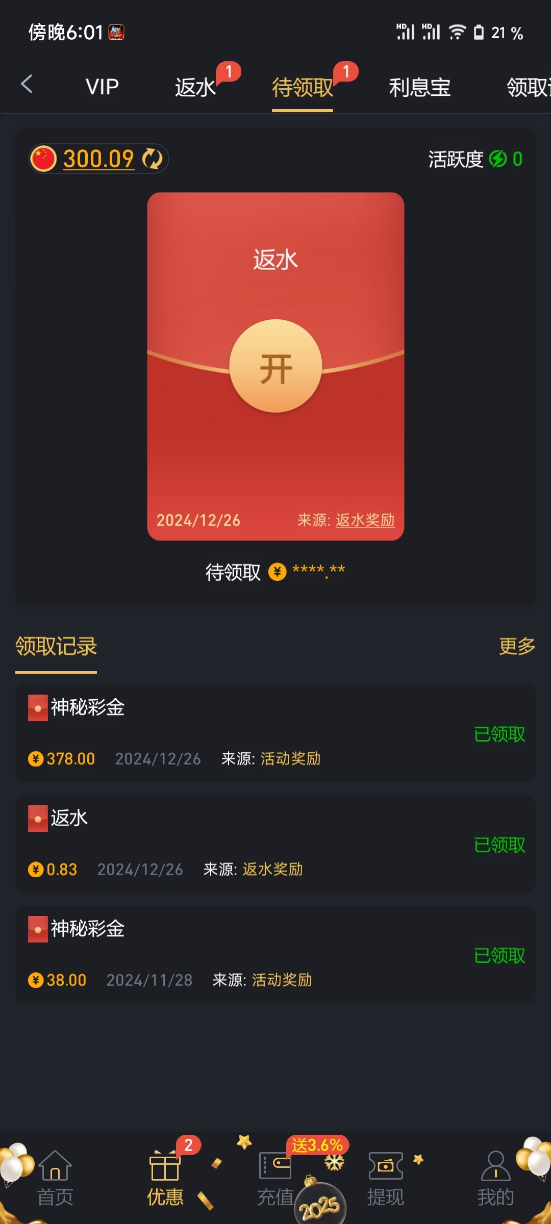 直接找客服申请神秘彩金就行