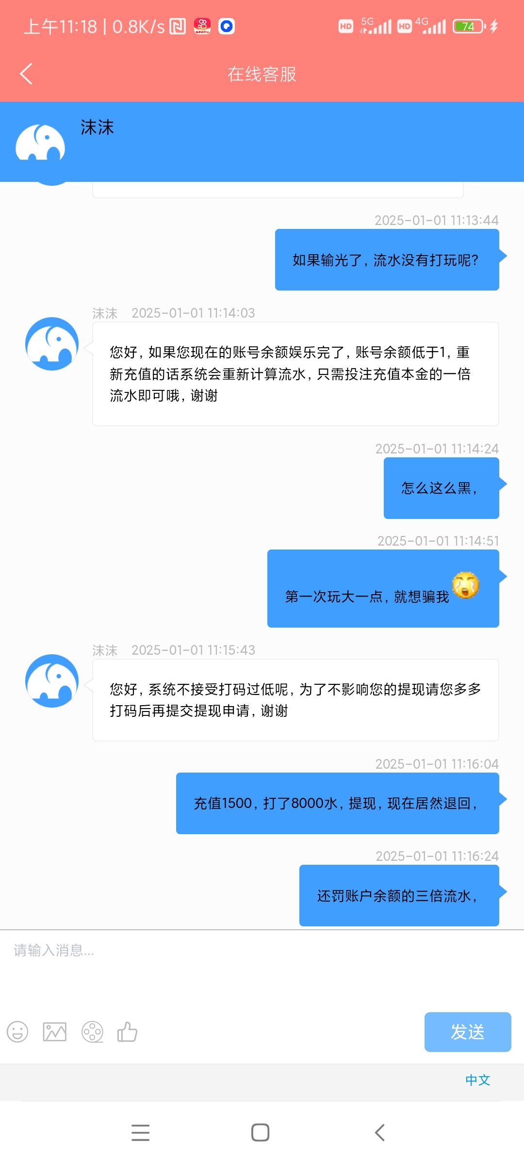 退回加流水,输到1700,提现又被退回,叫继续打流水,