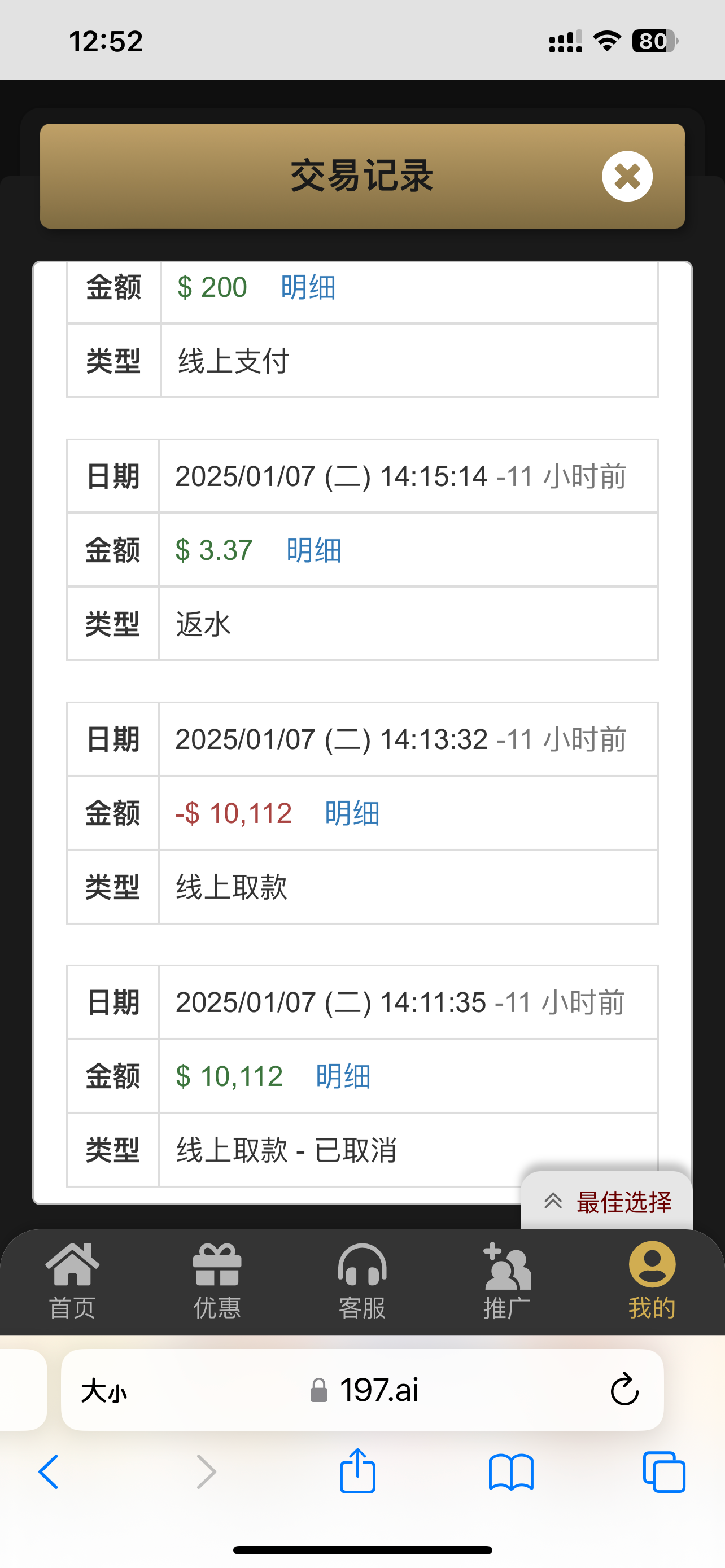20块出了10000 提完回充两百又出了1000