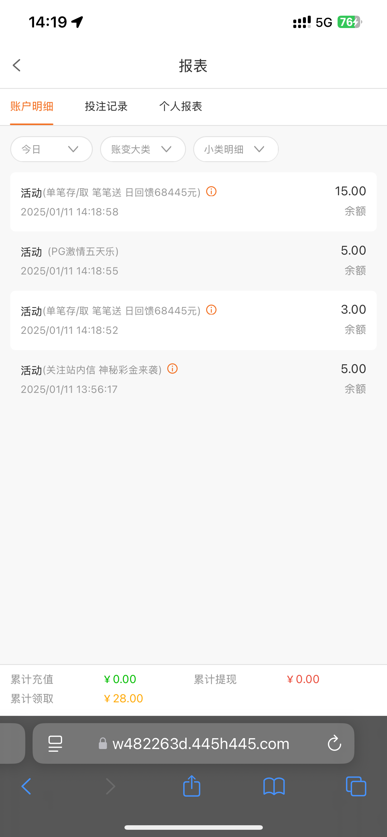 打过100存送的今天登录上去有回馈28,445.com
