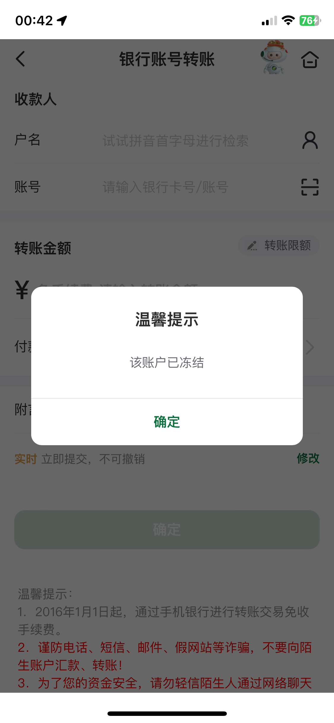 老实了卡里被冻10300