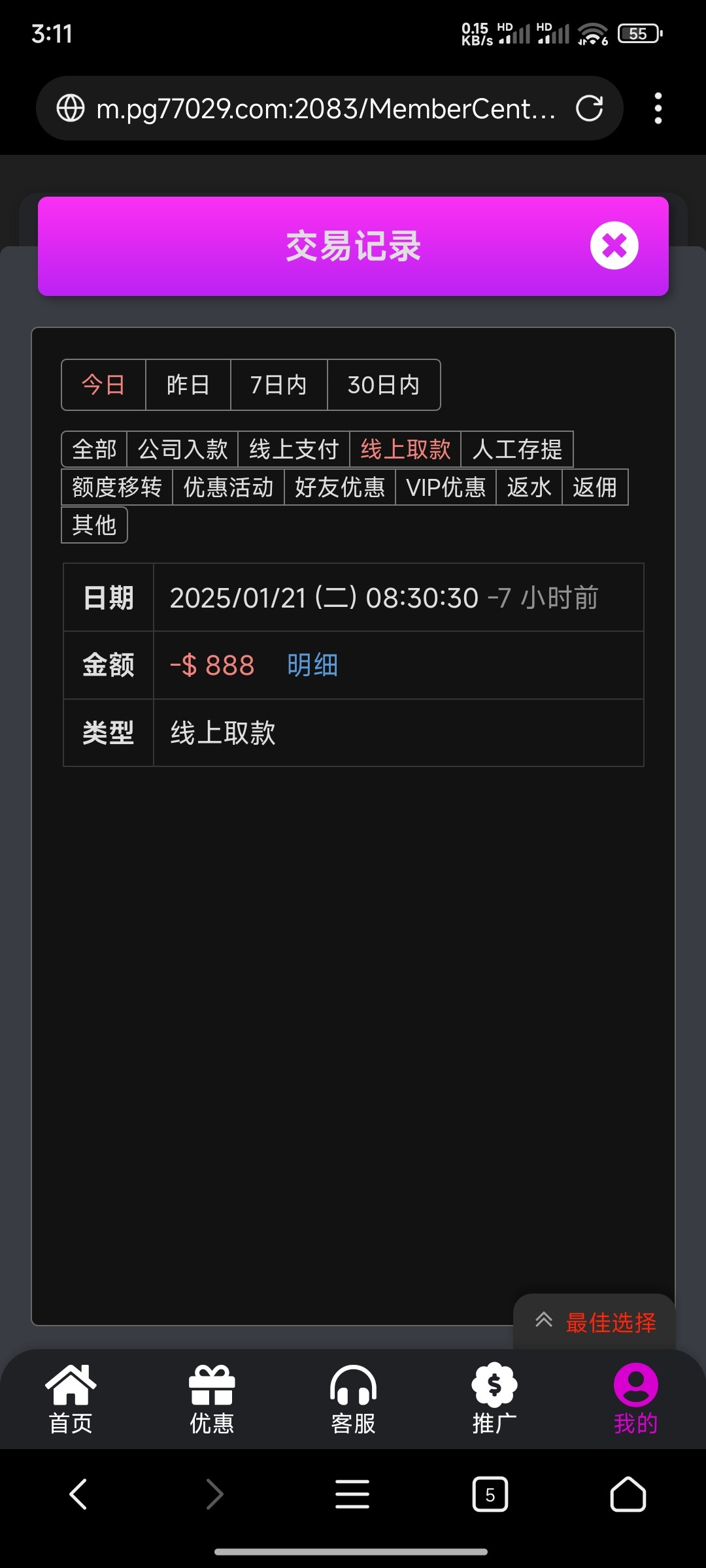 我是昨天77pg那个,哈哈今天3块出500,反水又出500,反水了又出600,自己上去看看有没有回馈,麻2牛b