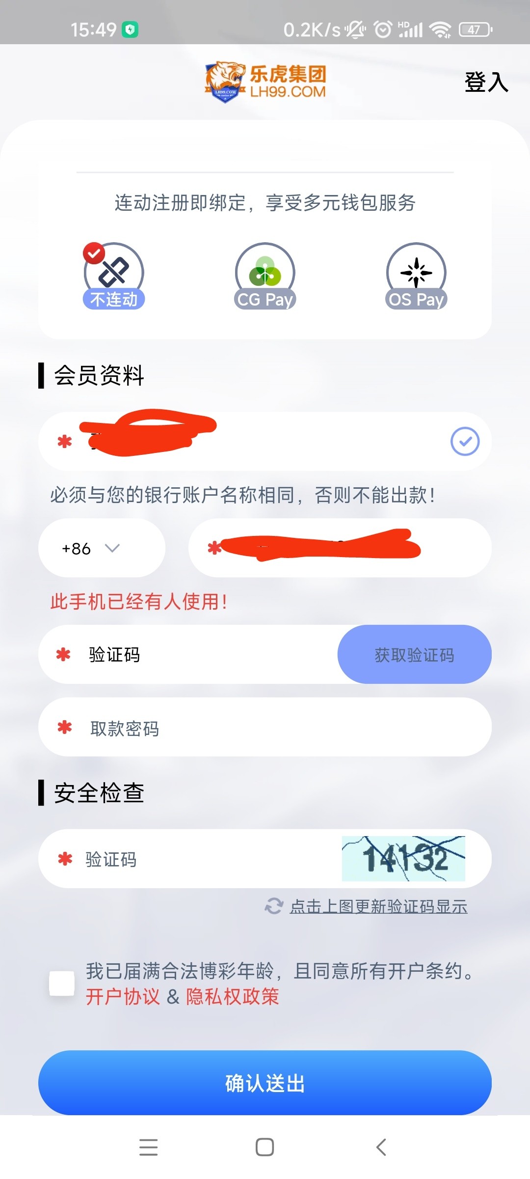 用其他手机号码注册?