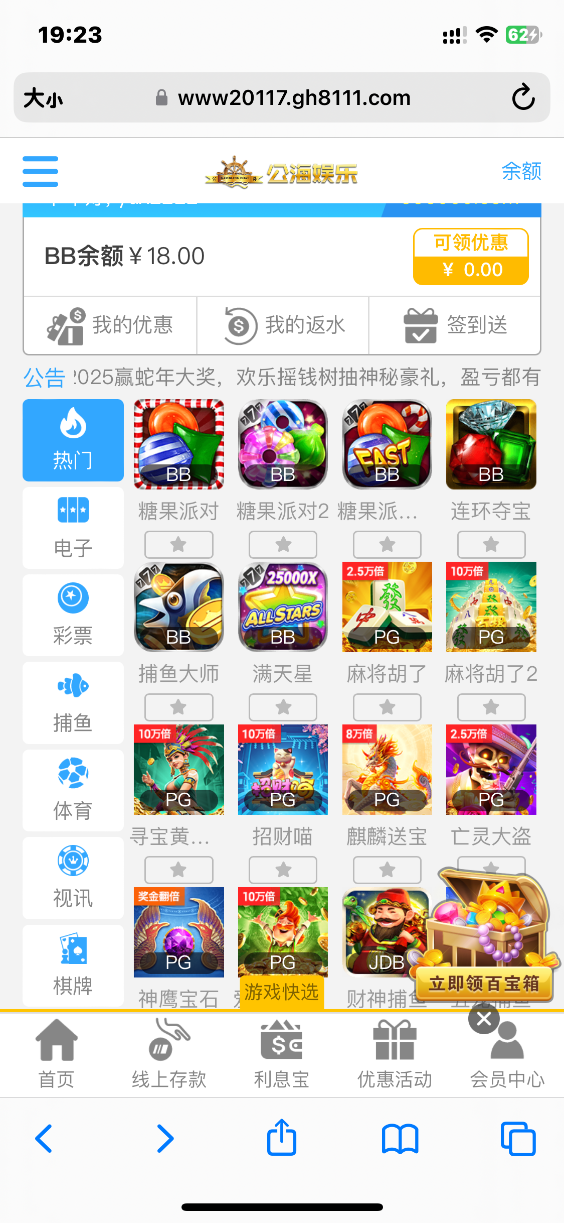 昨天看到就注册了,确实三个台子都送了18,可惜没一个打出来