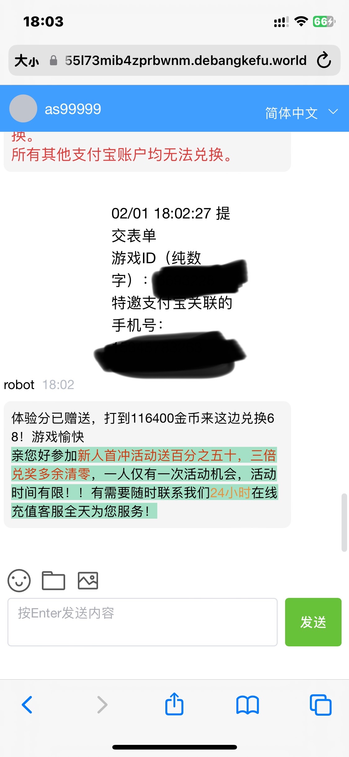 yux2222 我以前也撸过,重新注册个账号就行了同一个手机号我撸了三次打出来一次