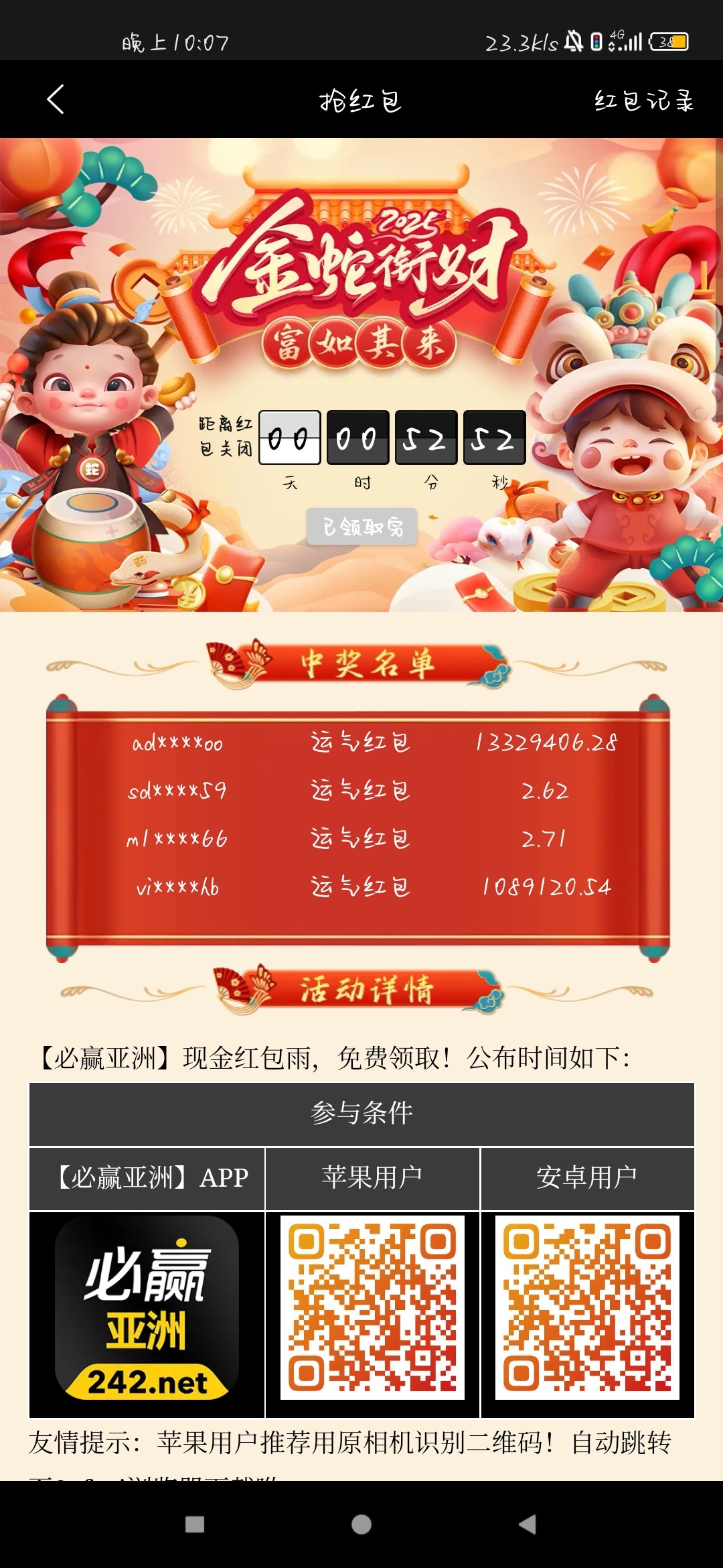 我也傻了 那天看必赢 我说我cnm怎么还有这么多人抢个红包三千多万啊我还数了几次  确实几百万不不少人