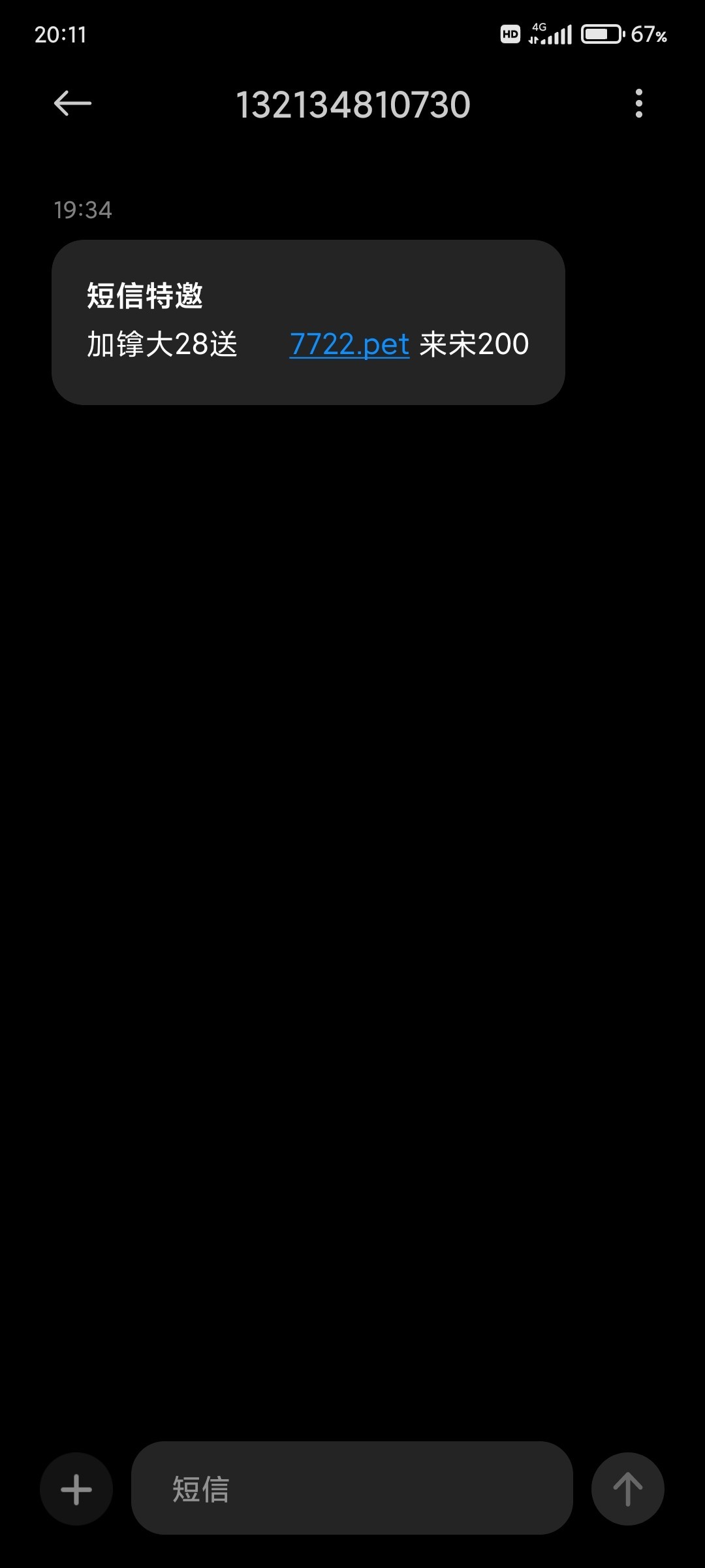 昨天收到短信去加旺旺的客服,发手机号过去说不在名单。注册问在线客服发过来就秒了200。