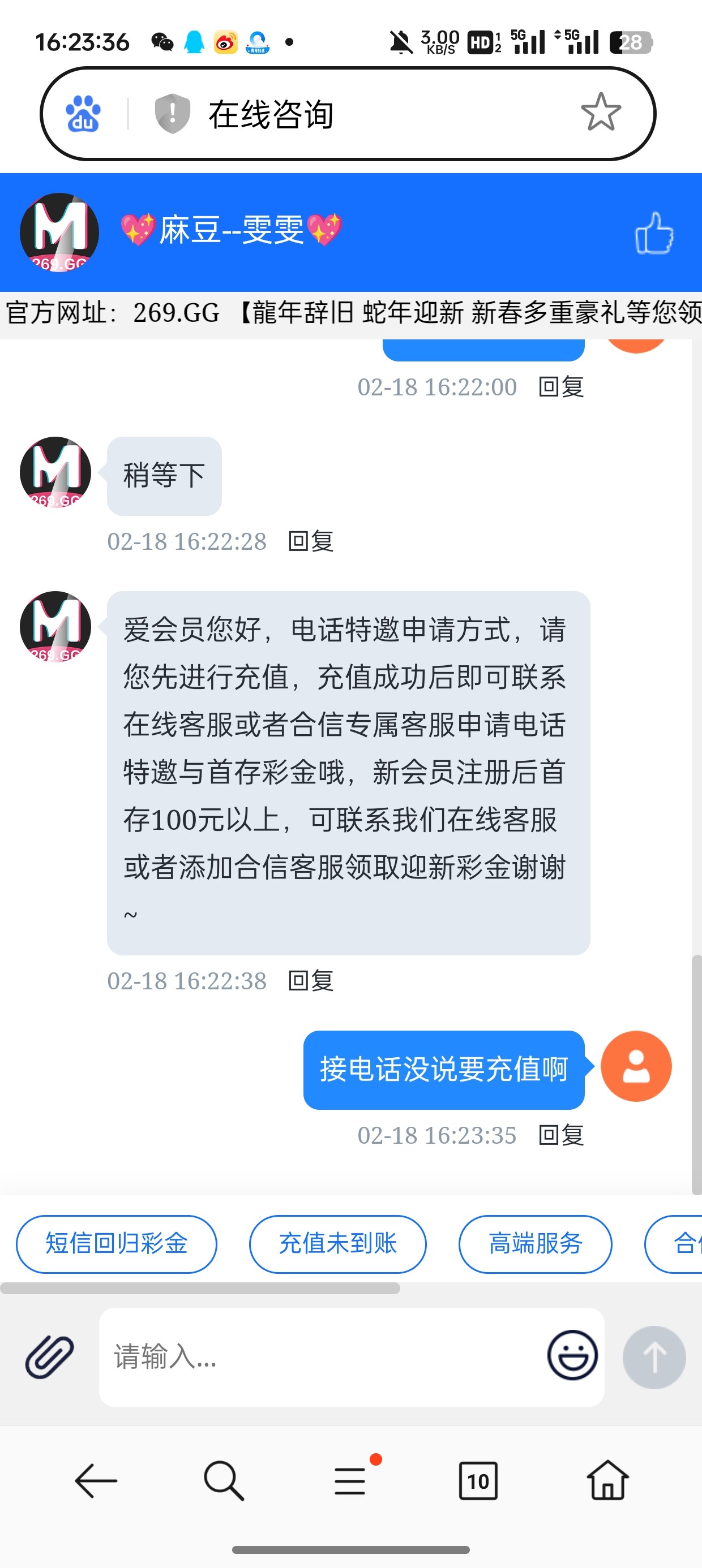 269.gg我看别人接电话领的彩金,自己去碰瓷一下领到了188,新老用户都可以好像,去试试吧