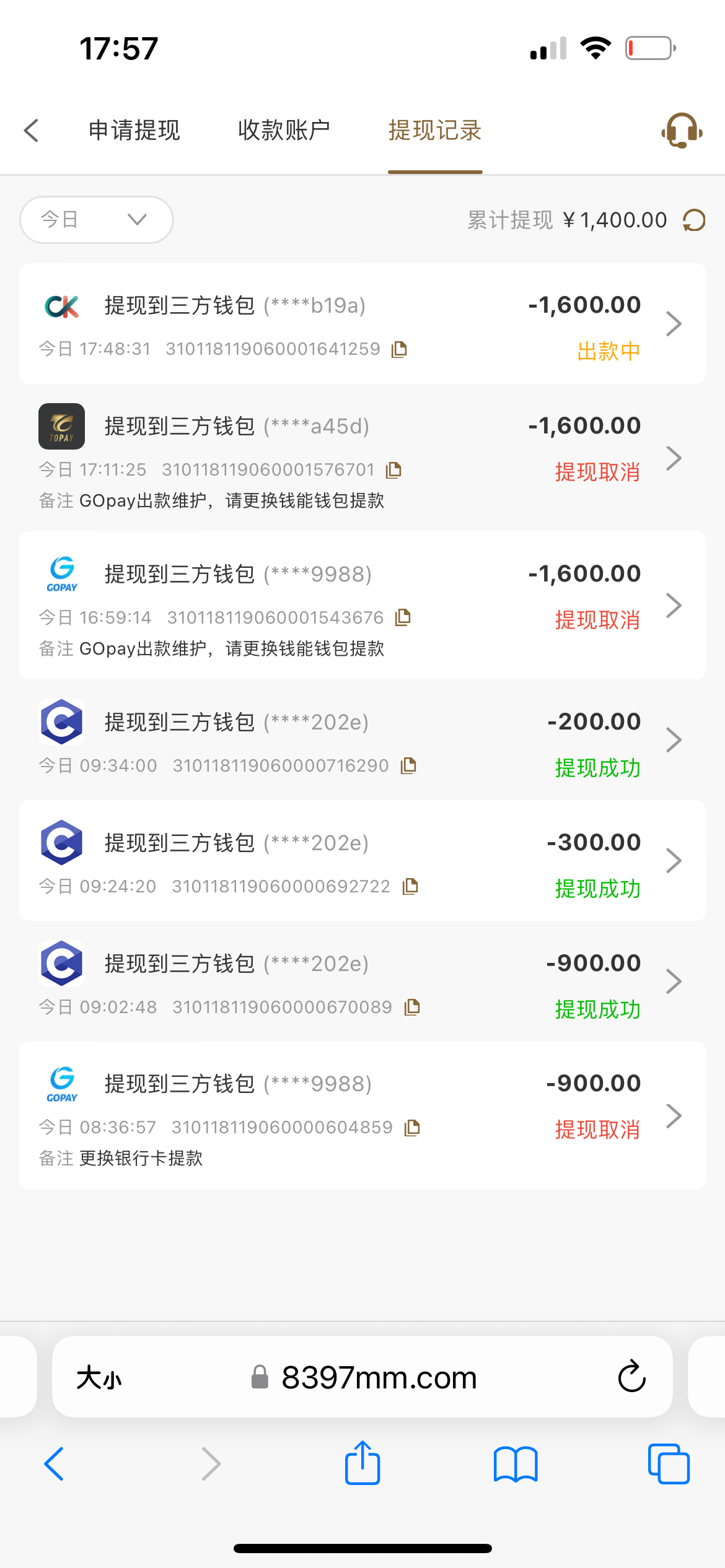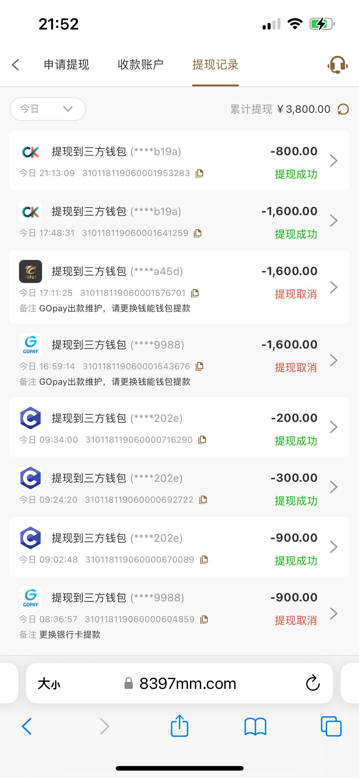 cz131415 大水首存提了900 反手充了3个一百 提了3800号上还有1000