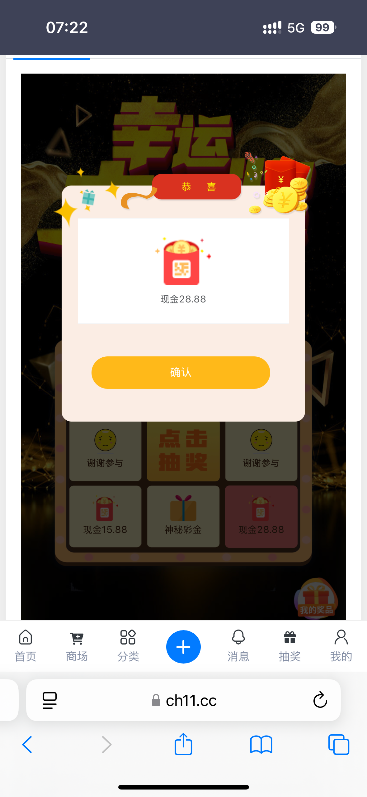 抽奖抽到28.88到了啊